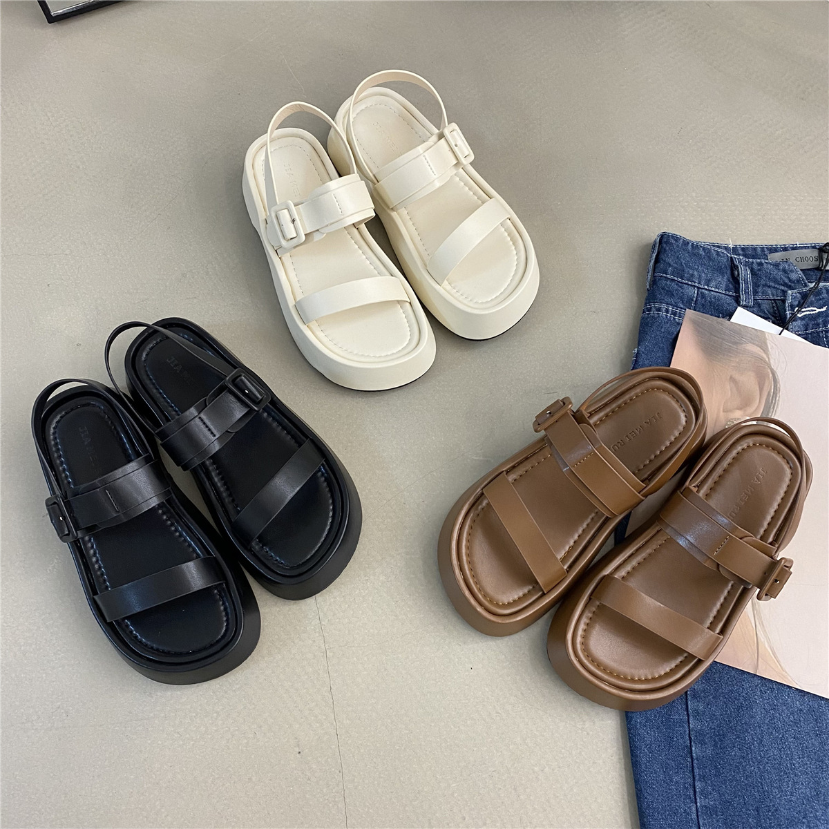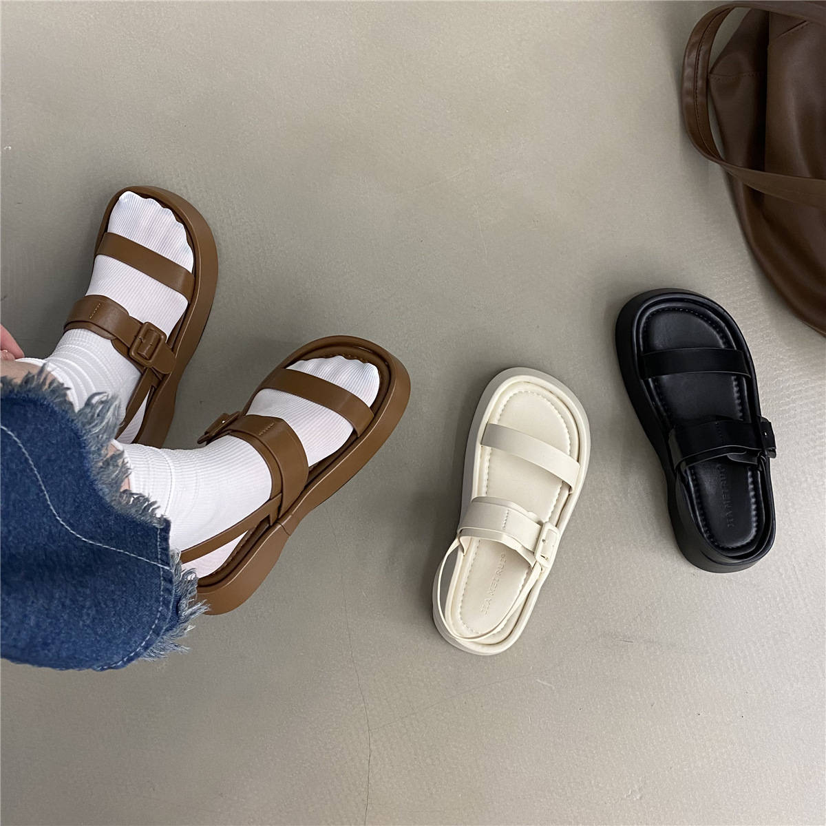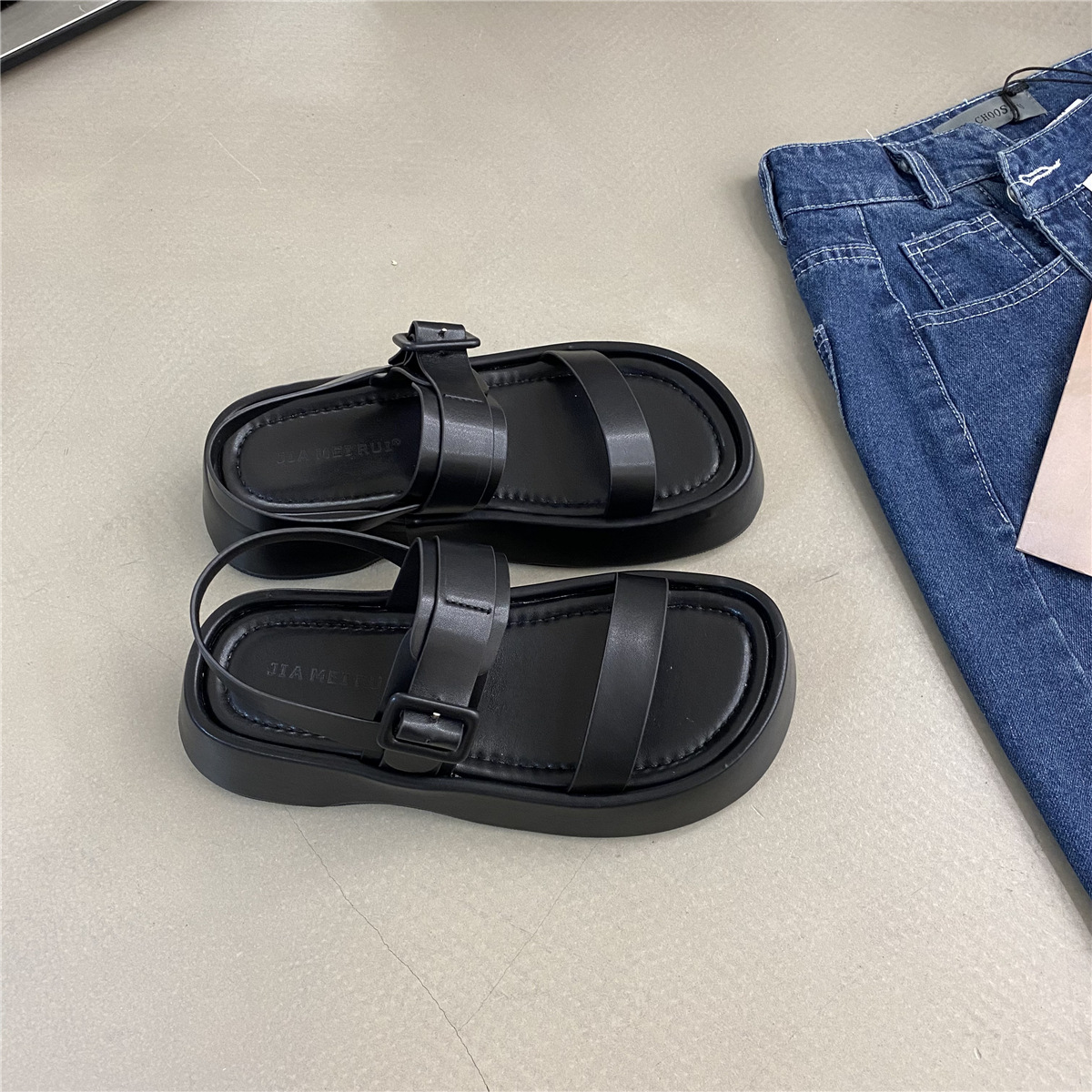 日系原宿风一字带鞋夏季新款厚底学生休闲简约沙滩罗马凉鞋女