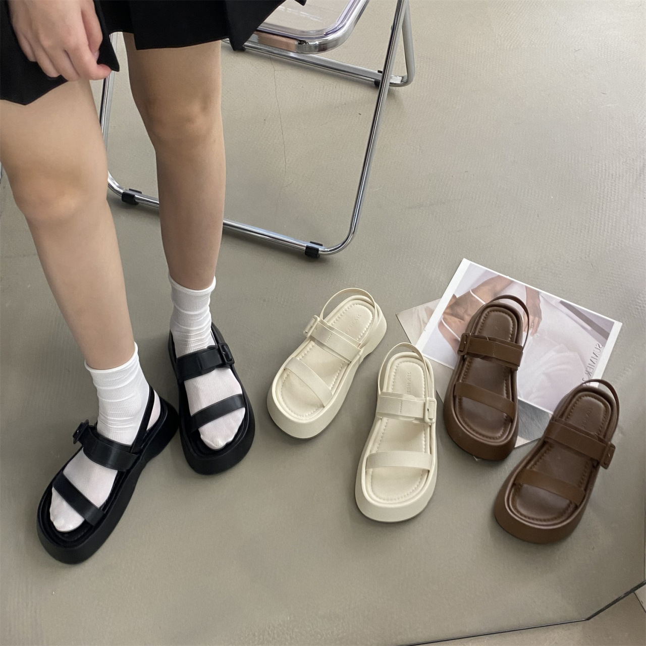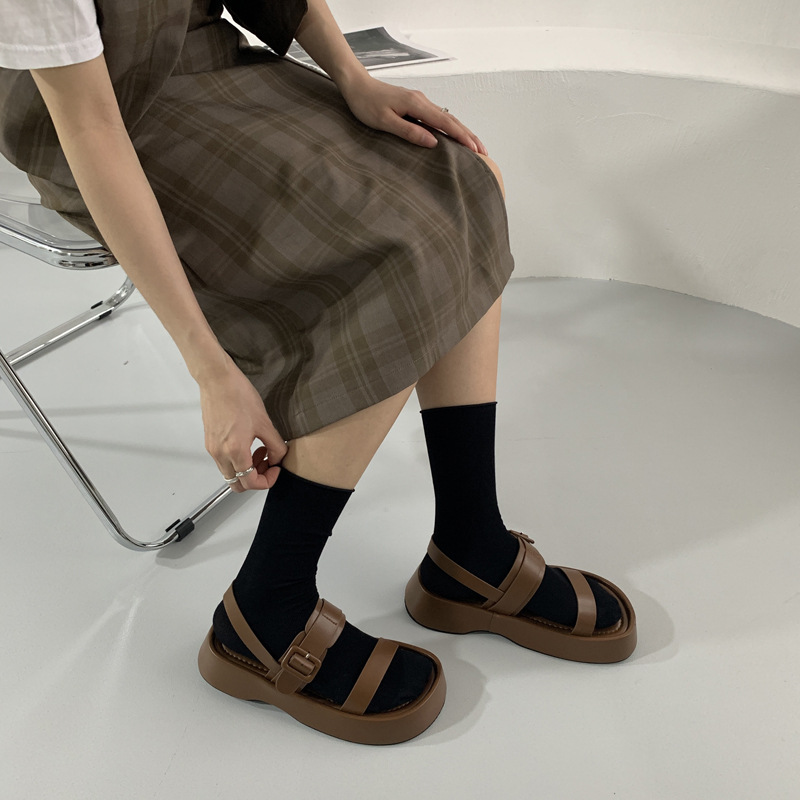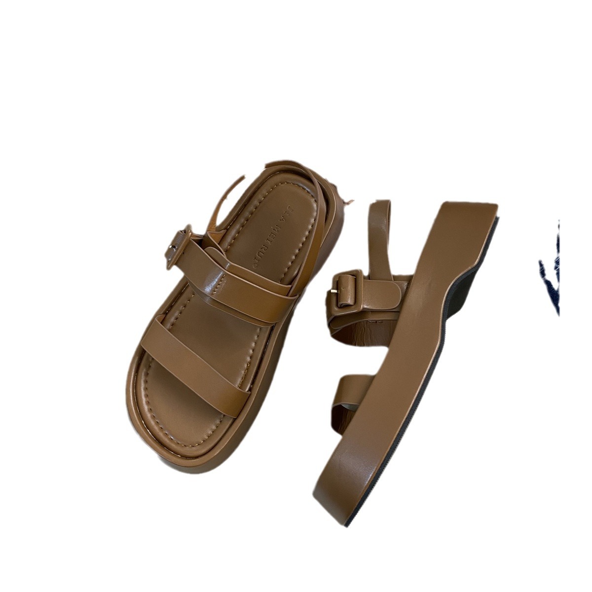 日系原宿风一字带鞋夏季新款厚底学生休闲简约沙滩罗马凉鞋女