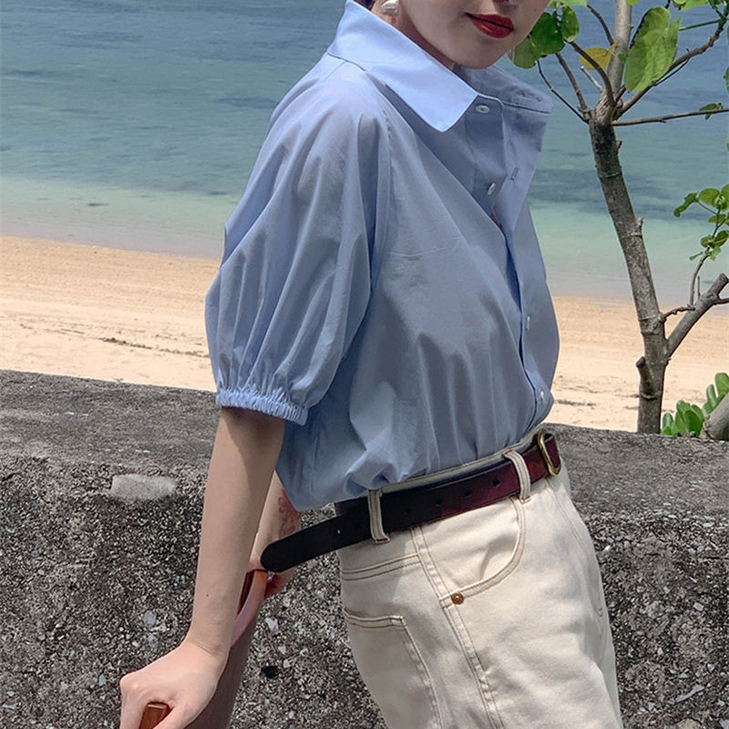 白色衬衫女夏季新款韩版学生宽松百搭外穿泡泡袖上衣短袖衬衣