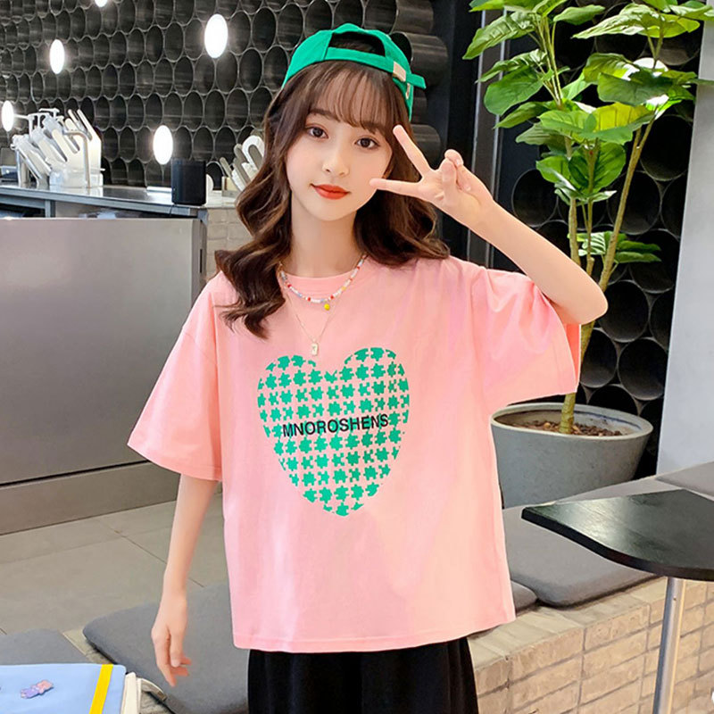 女童短袖t恤夏季新款韩版中大童爱心印花女孩夏装儿童装半袖上衣