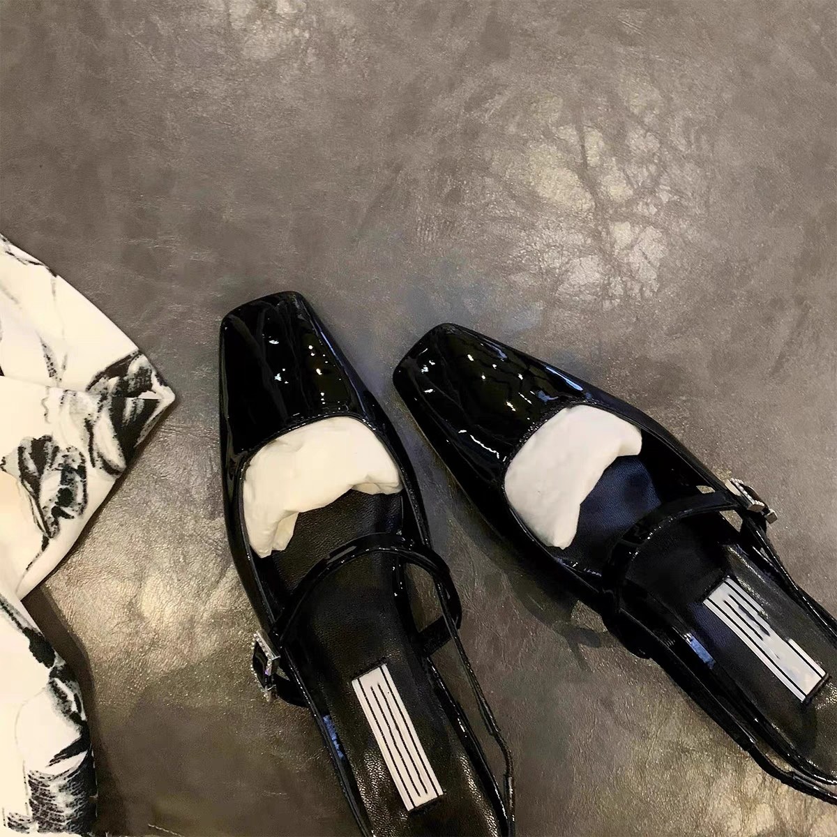 葡萄妈同款高跟鞋女新款方头漆皮粗跟浅口单鞋方扣通勤气质女