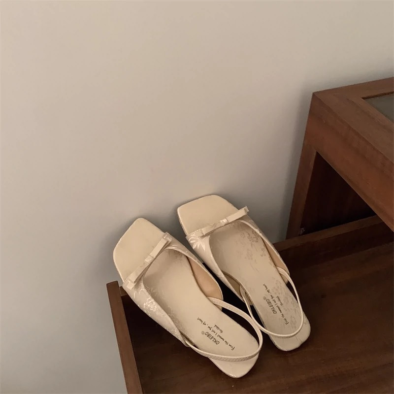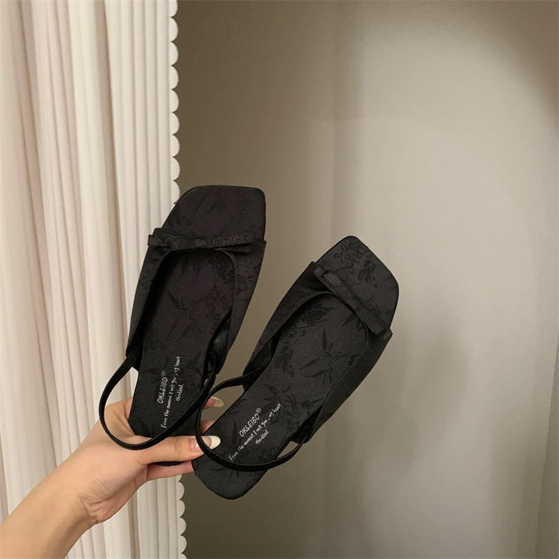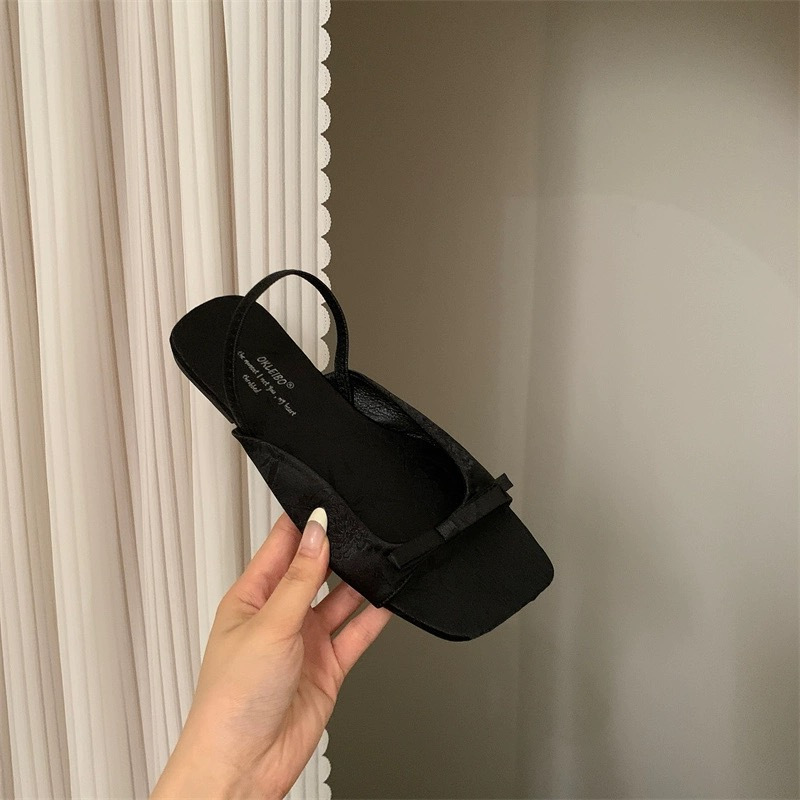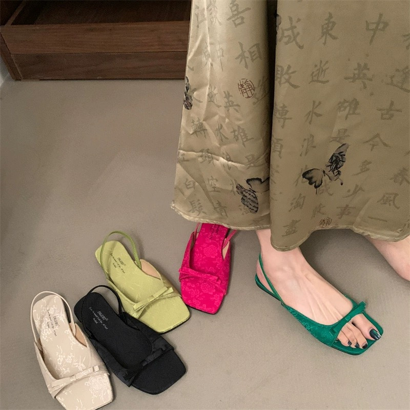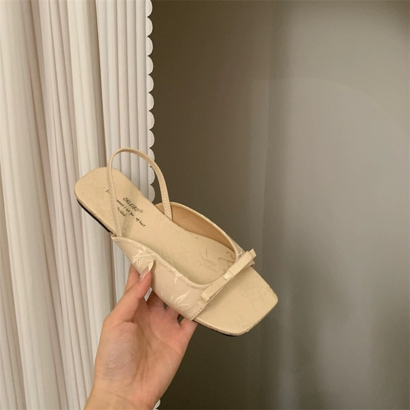 年春秋季新款简约风配裙子女蝴蝶结露趾平底凉鞋女