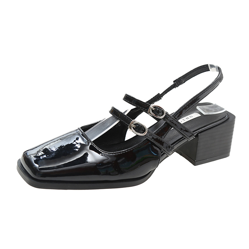 包头凉鞋女年夏季新款复古方头一字扣带玛丽珍后空粗跟单鞋春