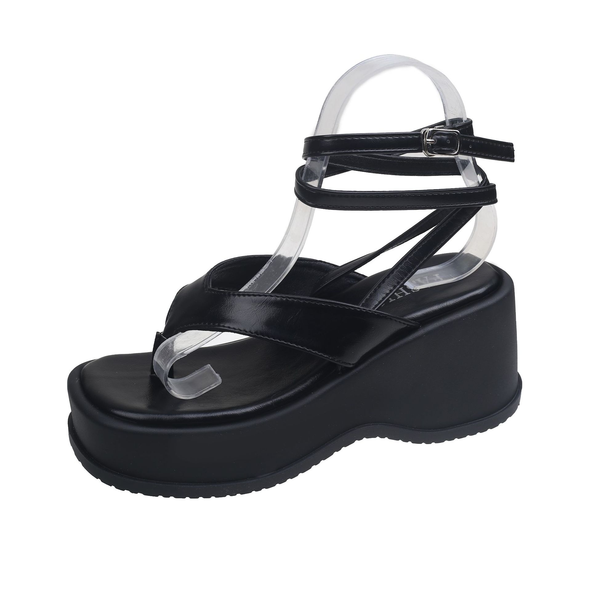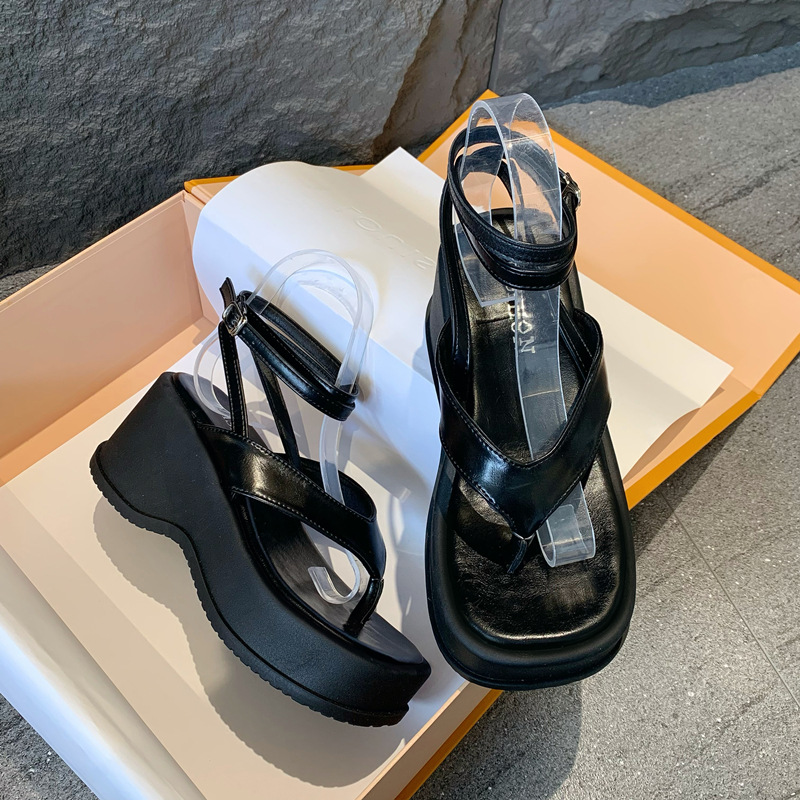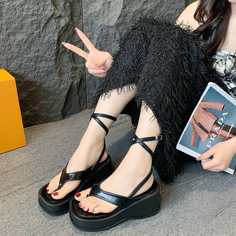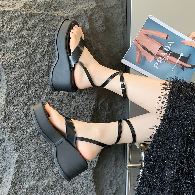 时尚气质黑色法式厚底罗马凉鞋女款新款夏季外穿增高仙女鞋