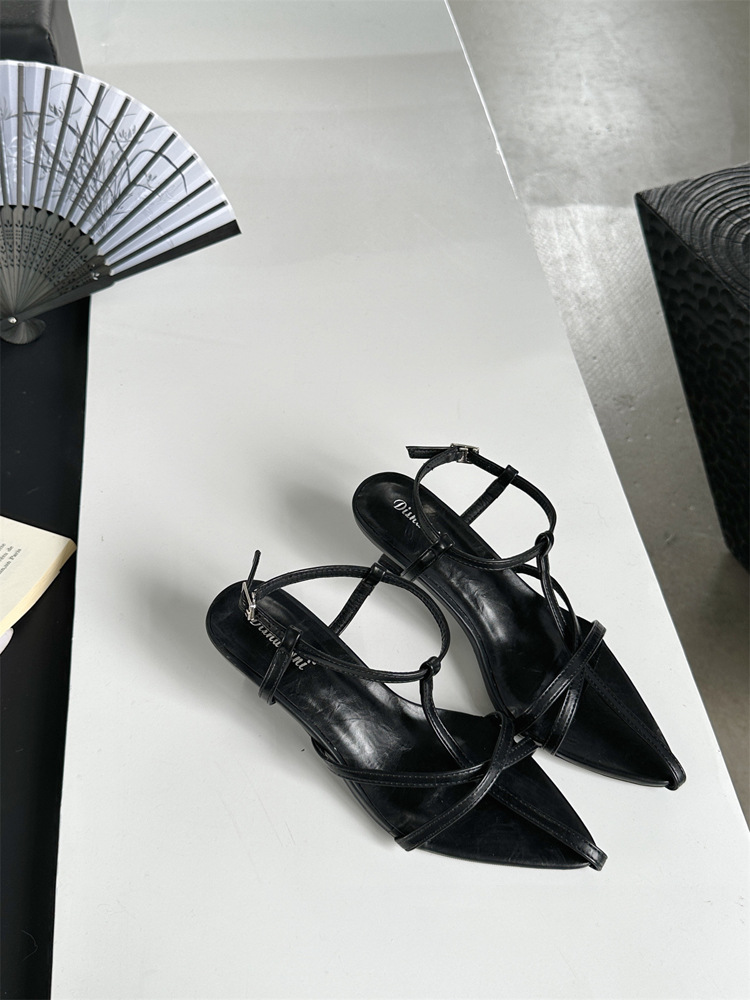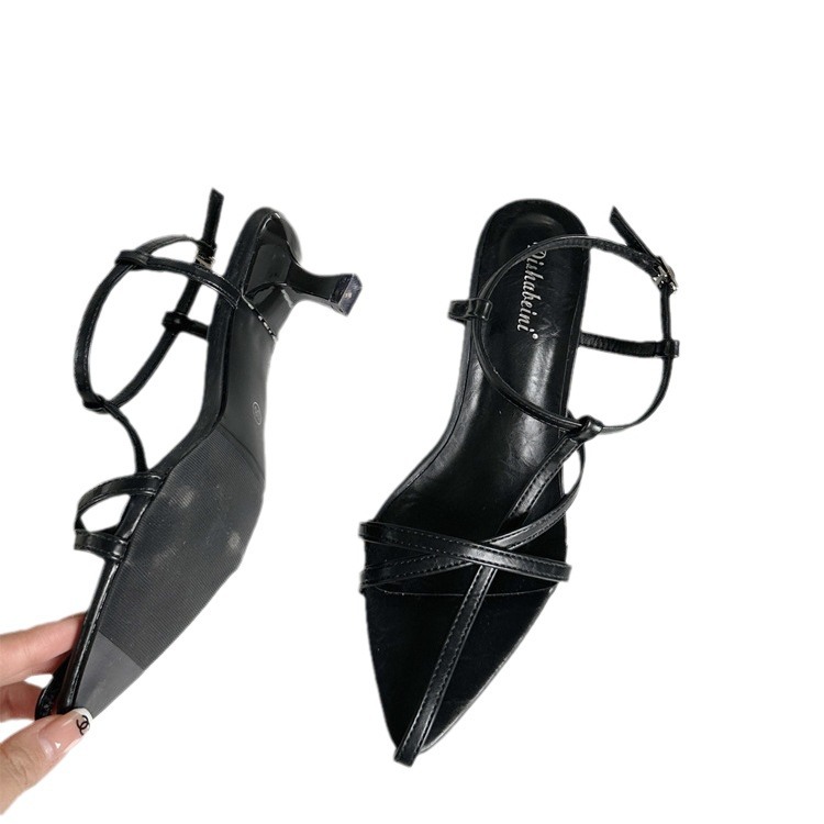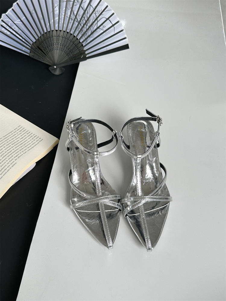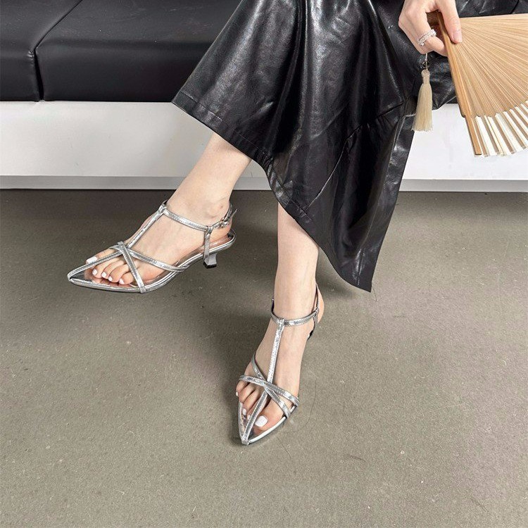 银色高跟罗马凉鞋女夏季新款外穿气质尖头露趾法式一字带凉鞋