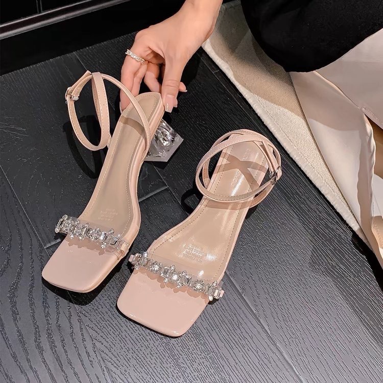 水钻凉鞋年夏季新款时尚仙女风女鞋一字带粗跟高跟鞋