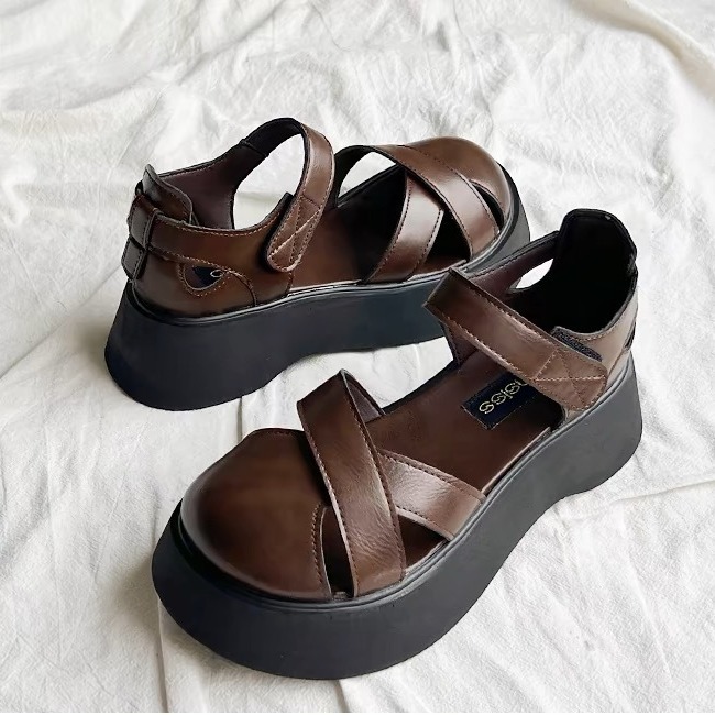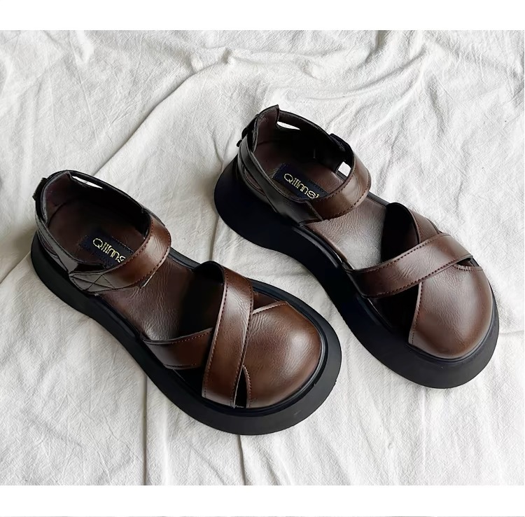 凉鞋女夏季新款包头不露趾复古配裙子罗马凉鞋女