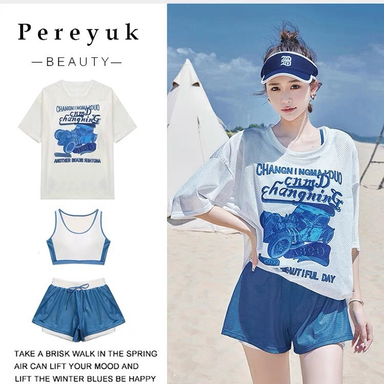 【高街出行】泳衣女运动分体背心三件套保守显瘦遮肚大码平角泳装