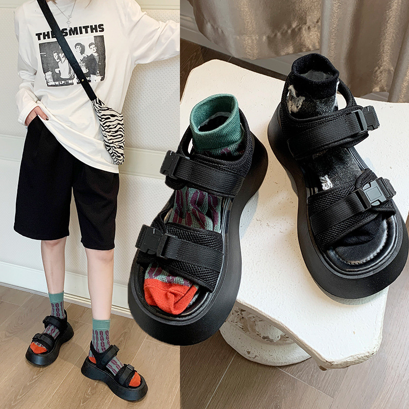 运动凉鞋女夏季新款厚底松糕学生时尚罗马平底大头休闲沙滩鞋