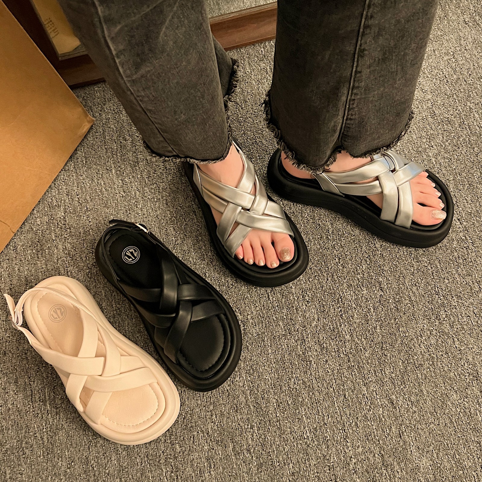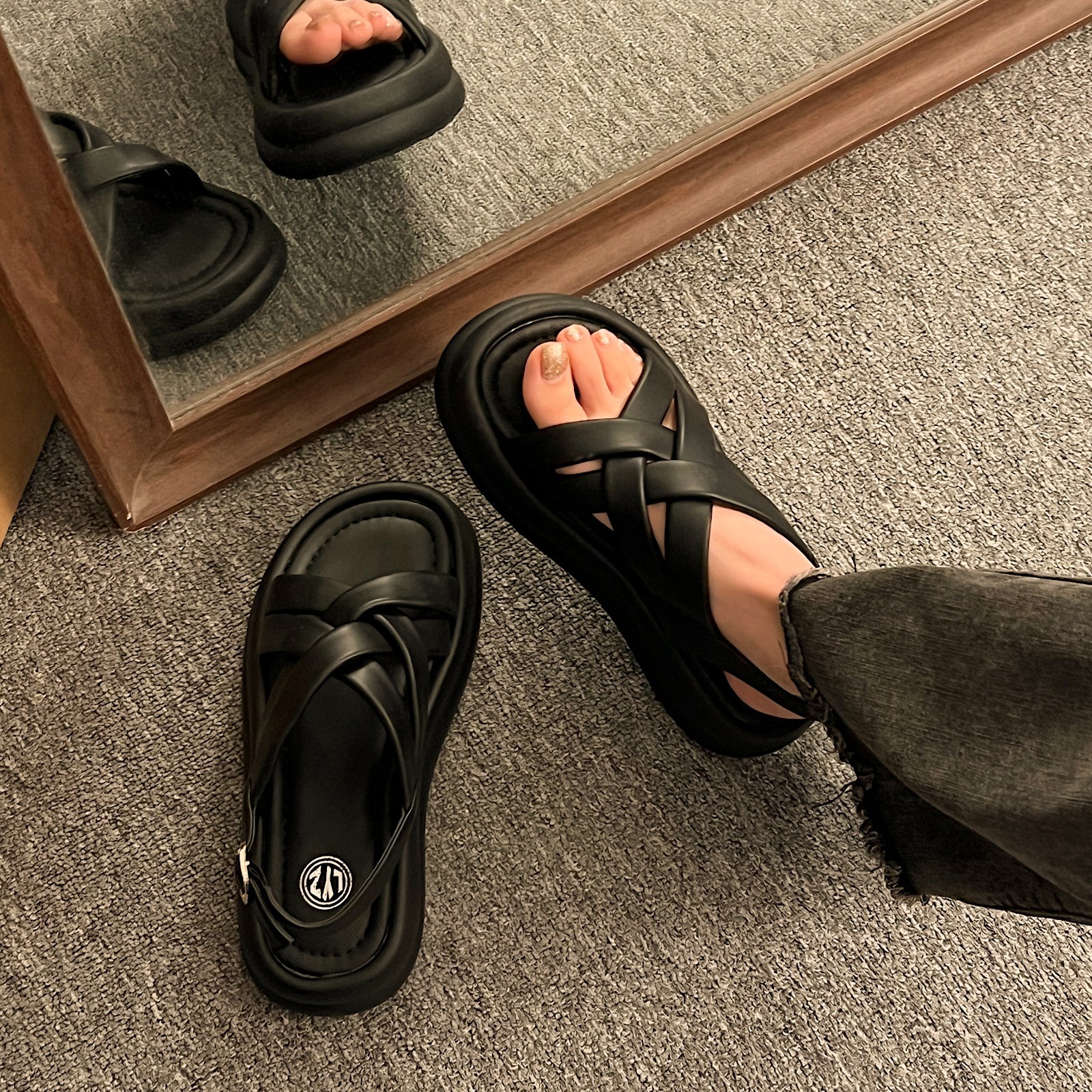 时尚百搭高级感厚底凉鞋女款新款夏季外穿配裙子软底罗马鞋子