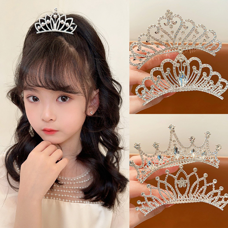 公主皇冠头饰儿童插梳女童珍珠水钻发夹生日演出饰品王冠发夹发饰