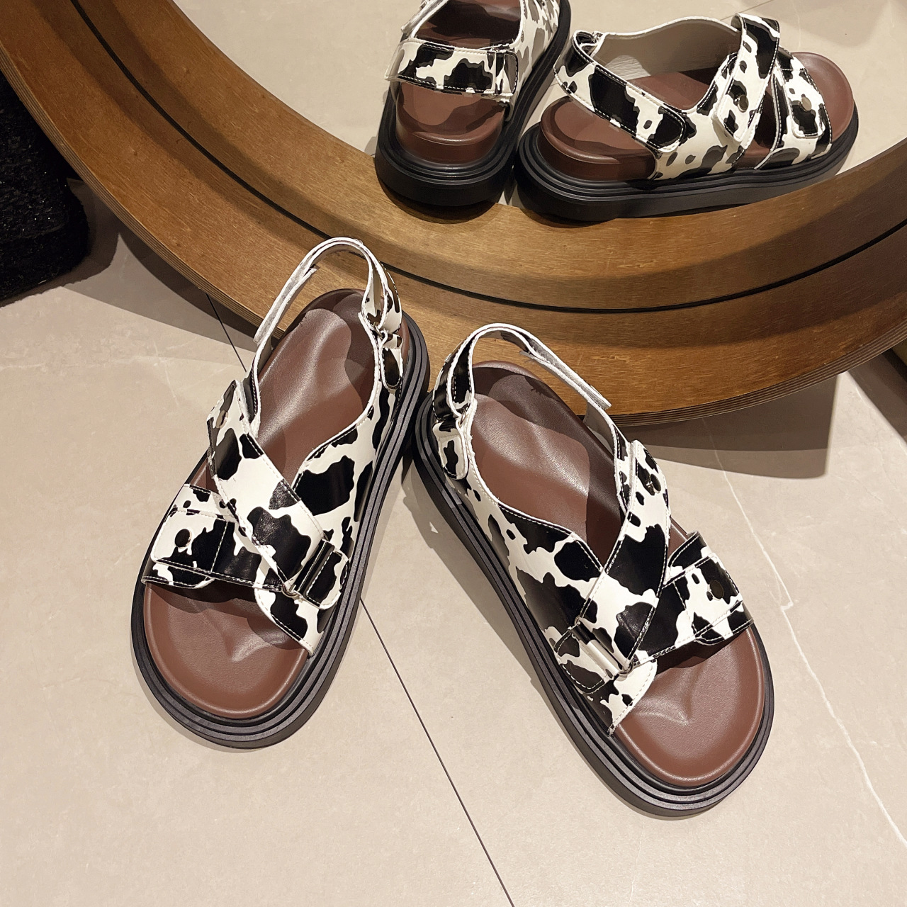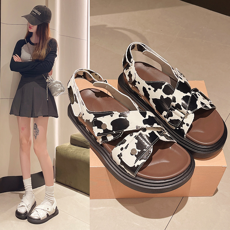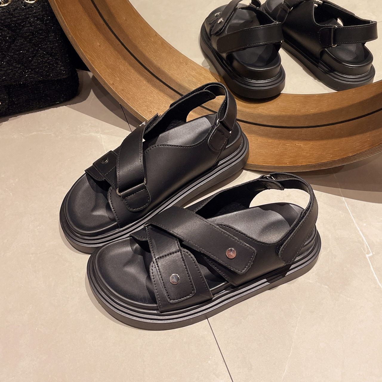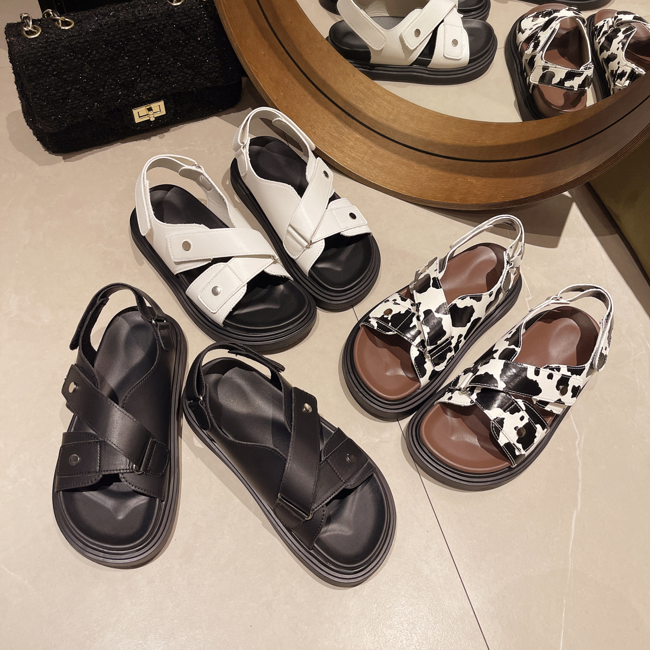 白色魔术贴百搭露趾厚底凉鞋女外穿新款夏季增高软底罗马凉鞋