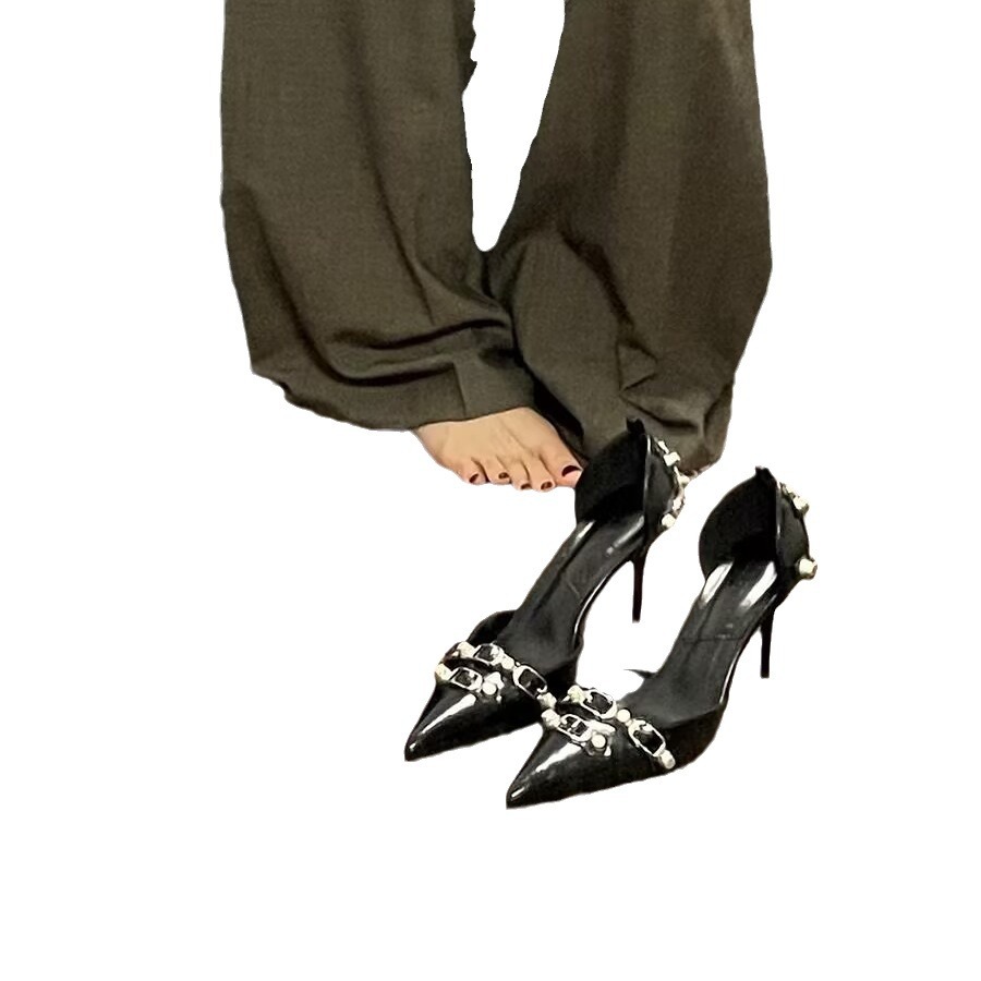 时尚高跟鞋女细跟单鞋新款舒适浅口单鞋女单鞋扣带尖头