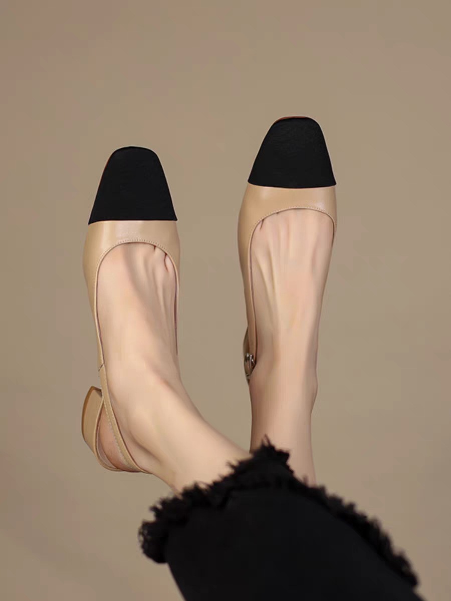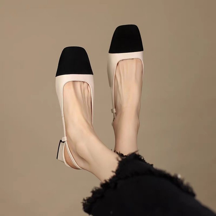 小香风包头凉鞋女年新款夏百搭法式中跟后空女鞋粗跟拼色单鞋