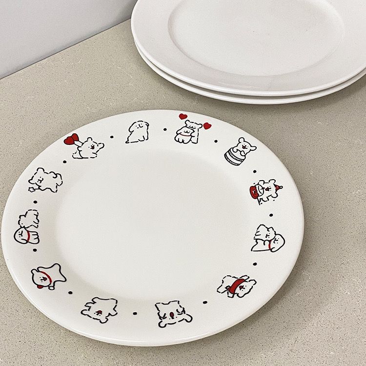 网红ins餐盘早餐小狗家用陶瓷盘子日式卡通可爱高颜值餐具