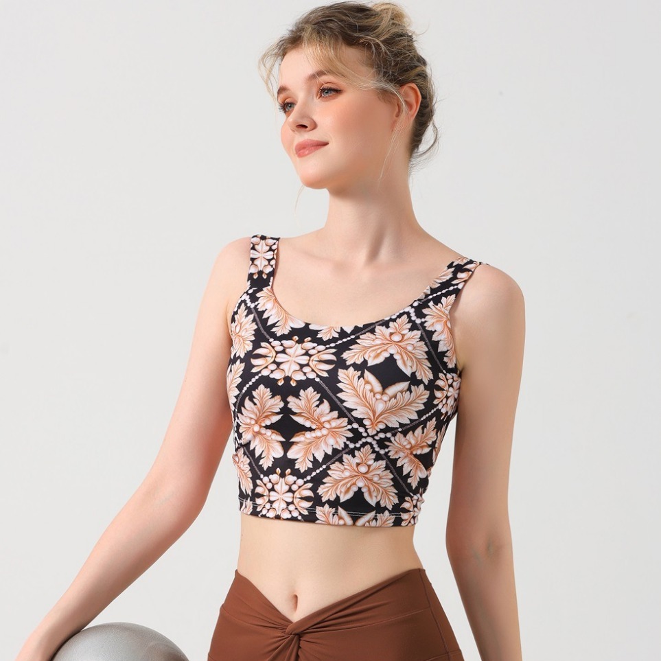 跨境外贸欧美印花美背心瑜伽服女带胸垫运动文胸健身内衣高强度