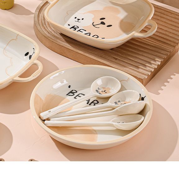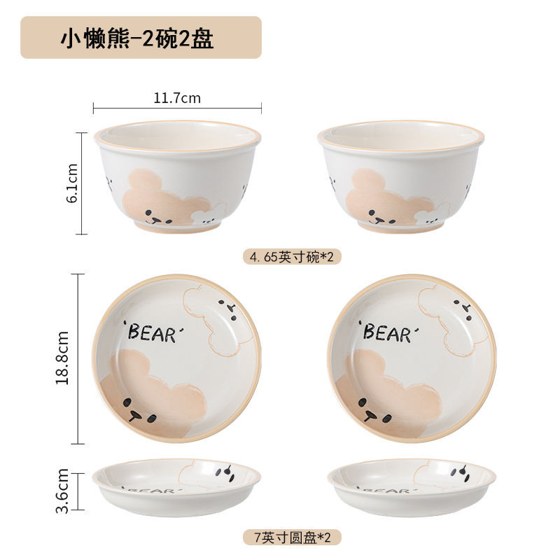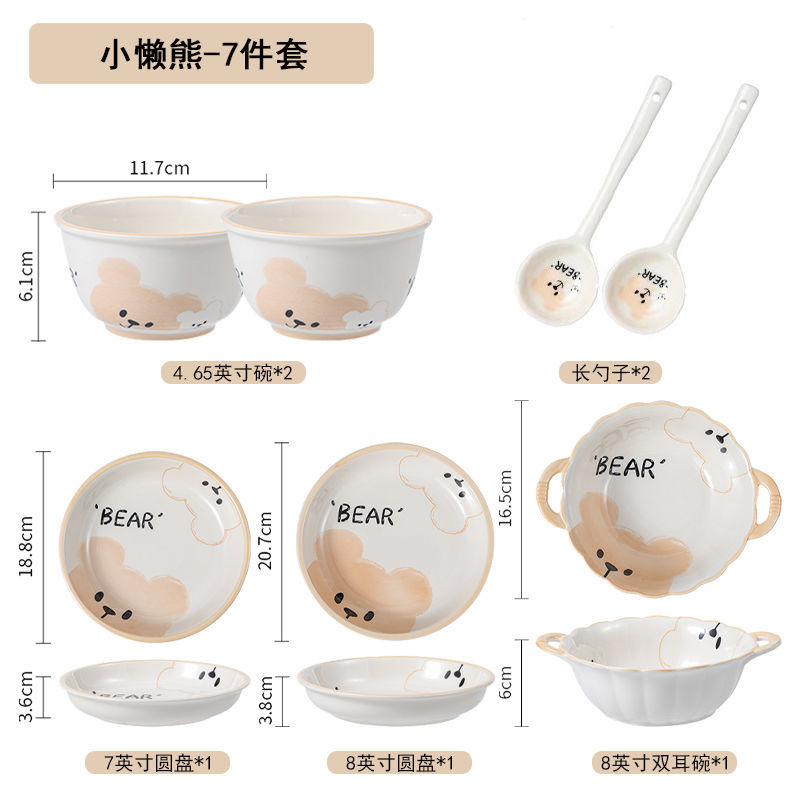 碗盘套装餐具可爱奶油风网红高颜值陶瓷釉下彩家用吃饭饭碗菜碟子