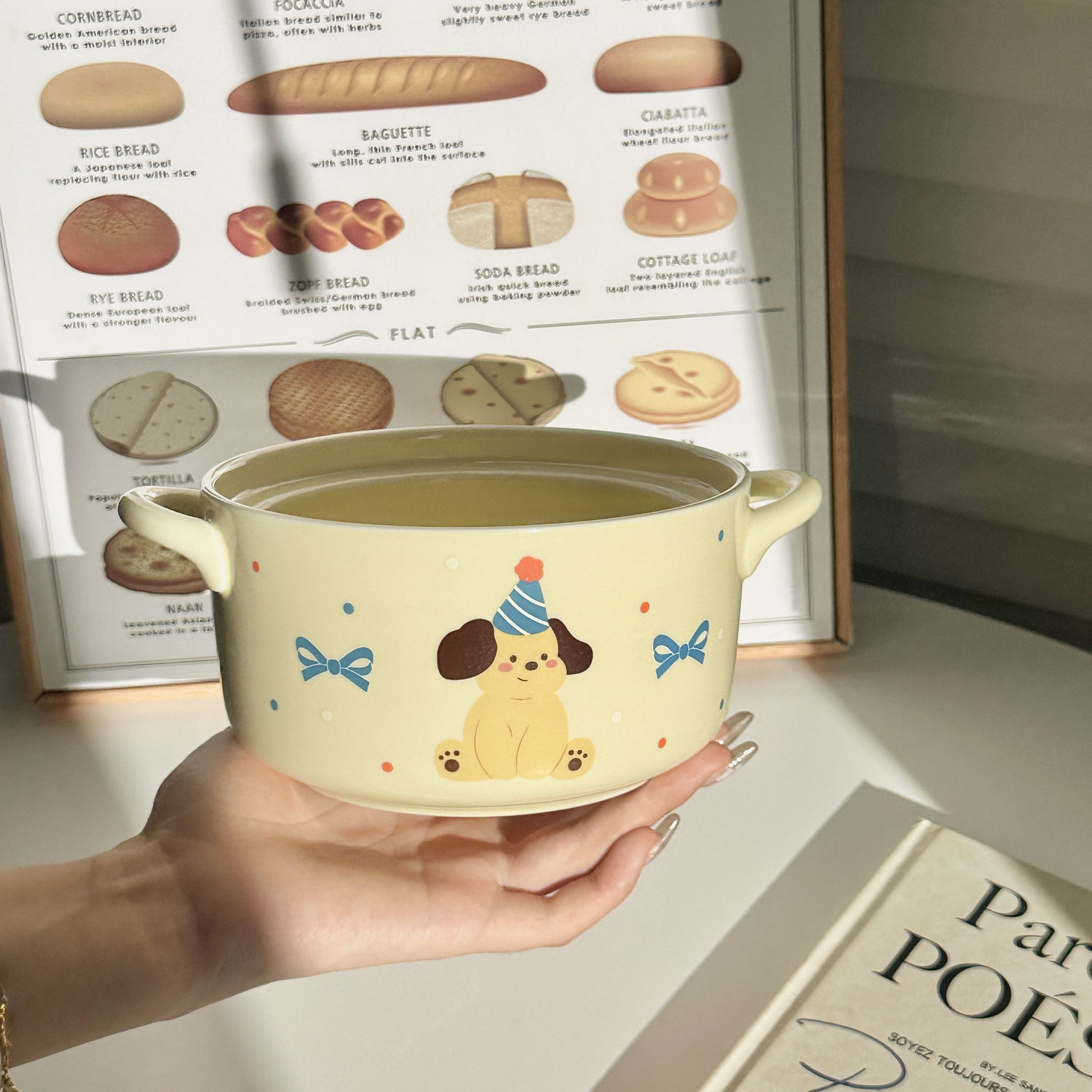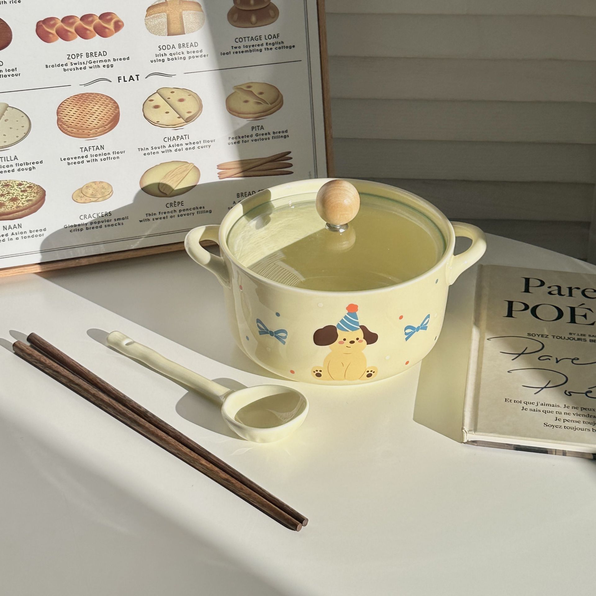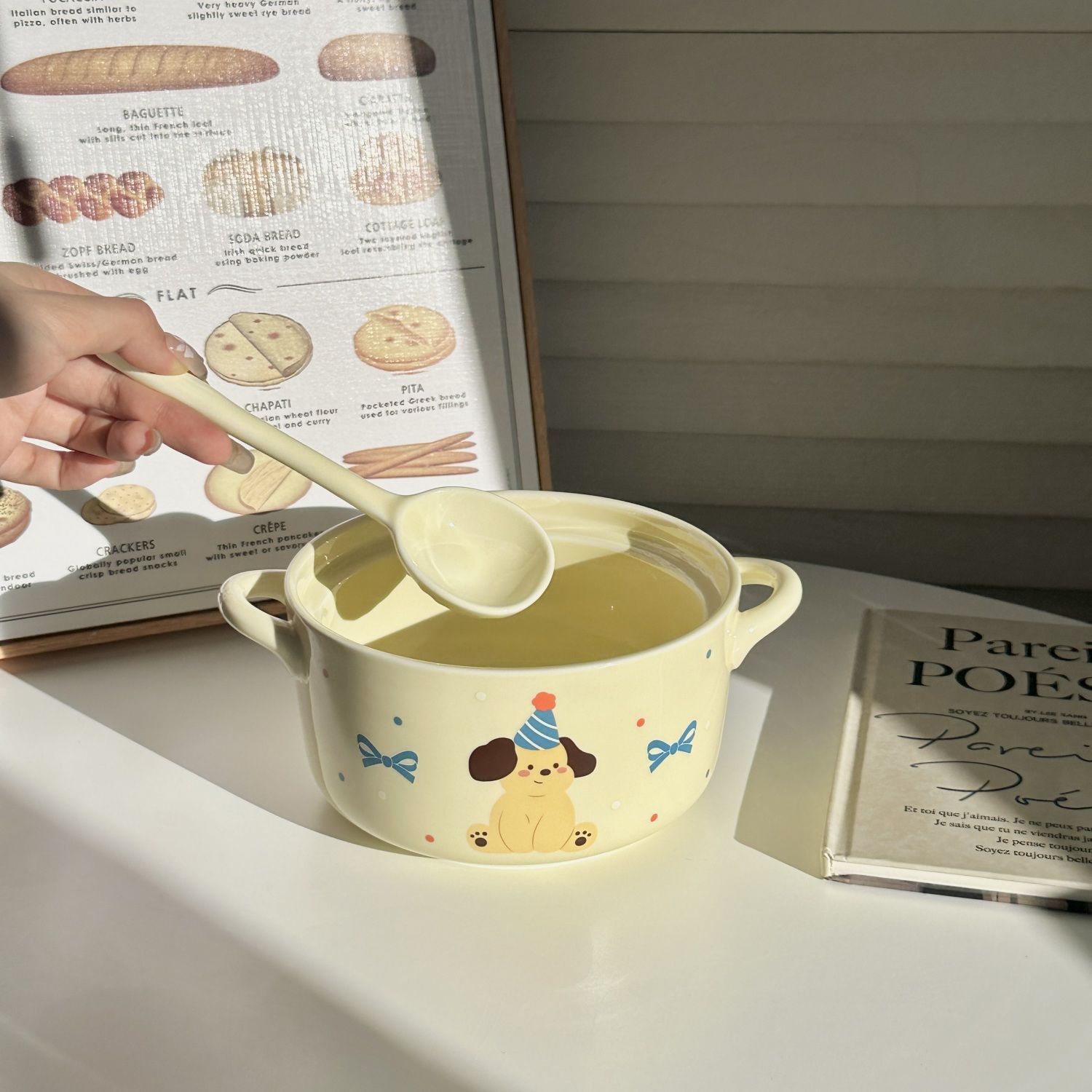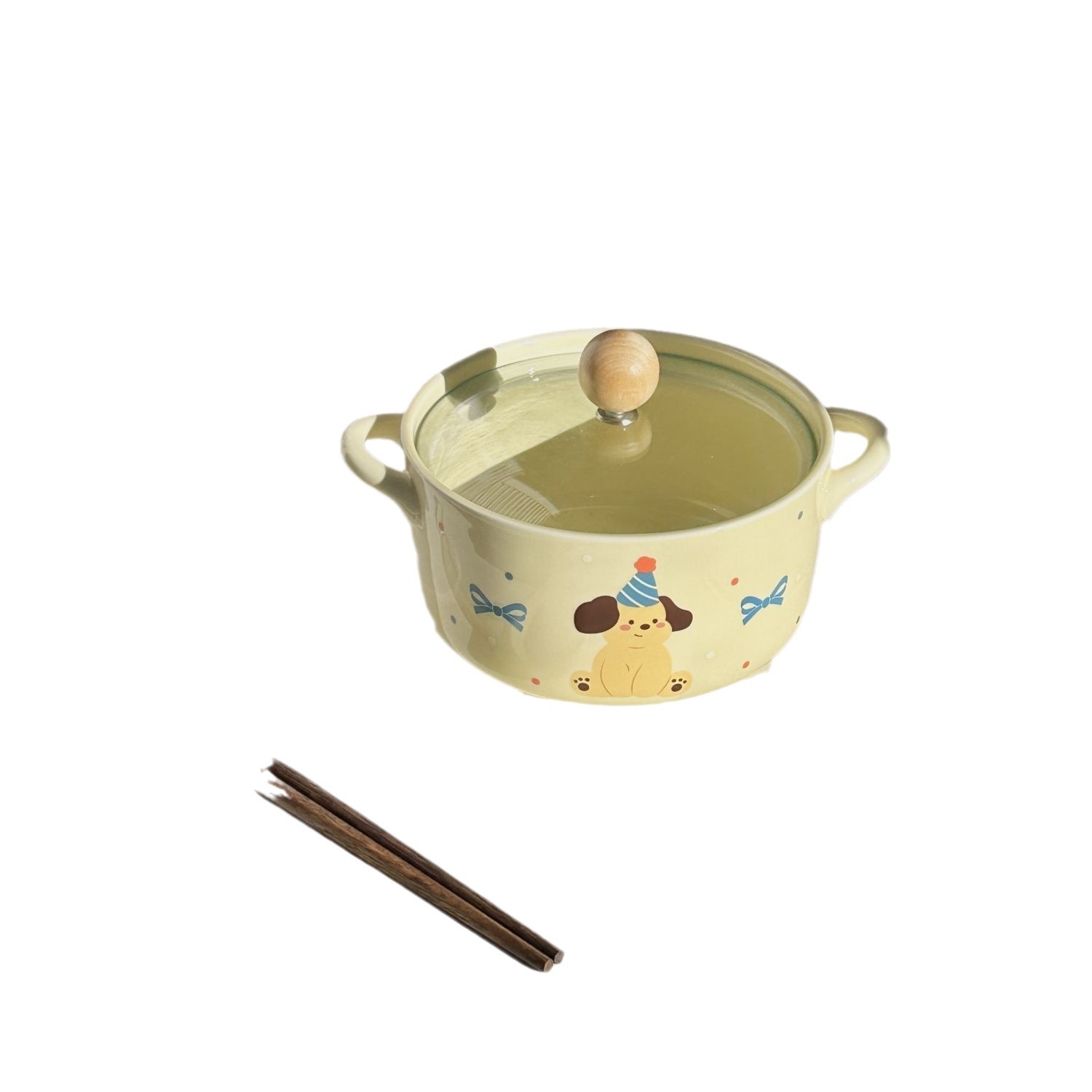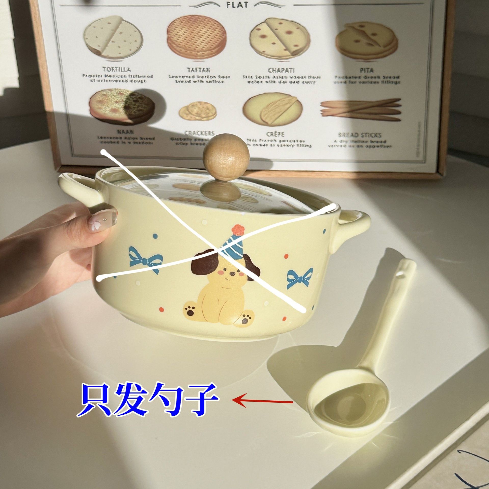 新款ins风奶油小狗陶瓷泡面碗带盖学生宿舍用方便面碗大容量汤碗