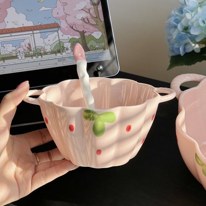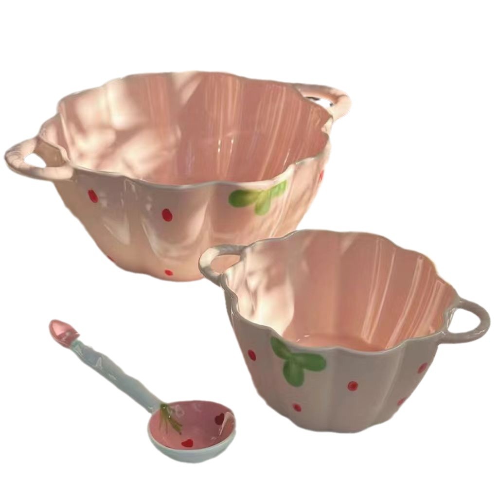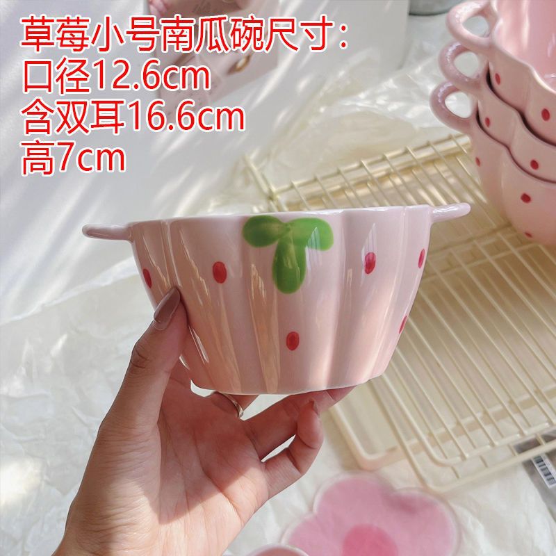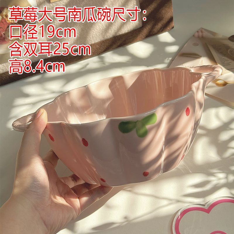 【10英寸】少女心草莓双耳南瓜碗+勺