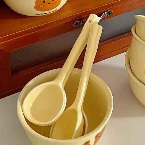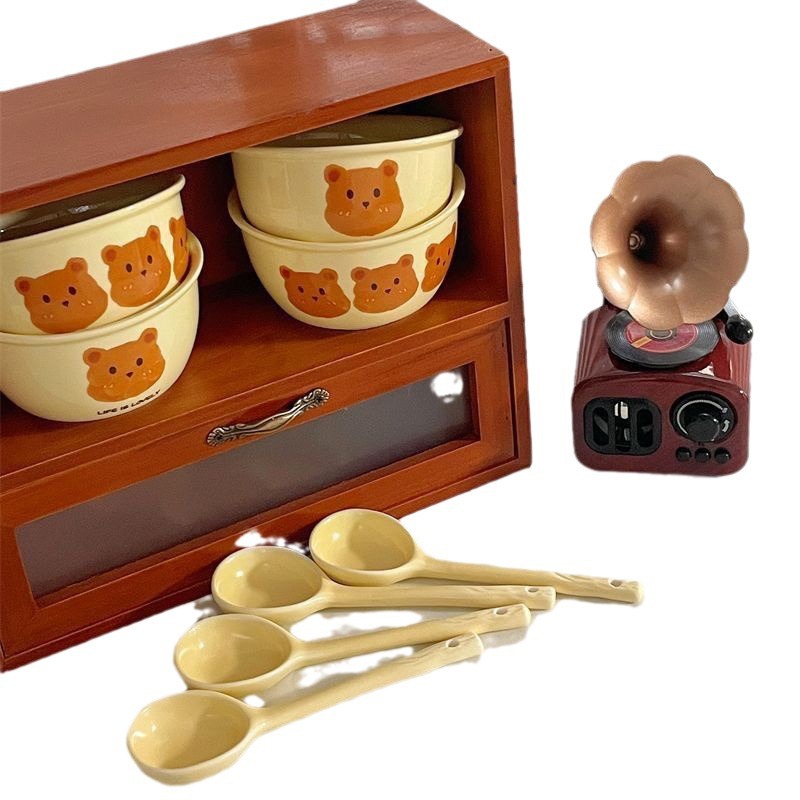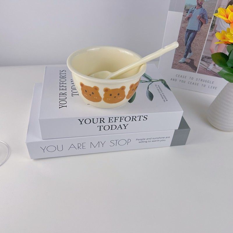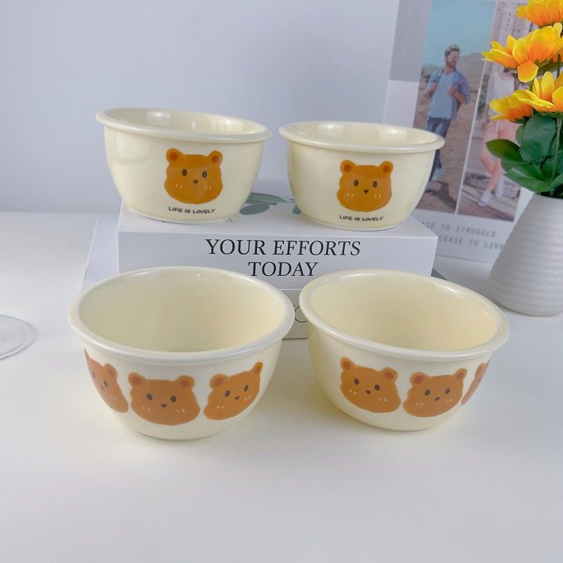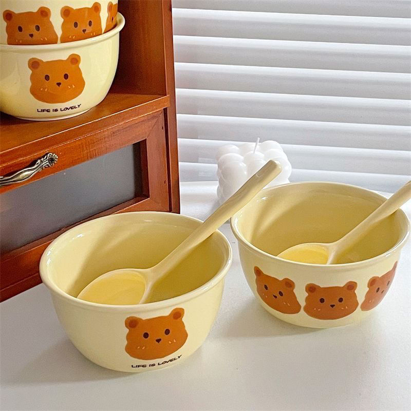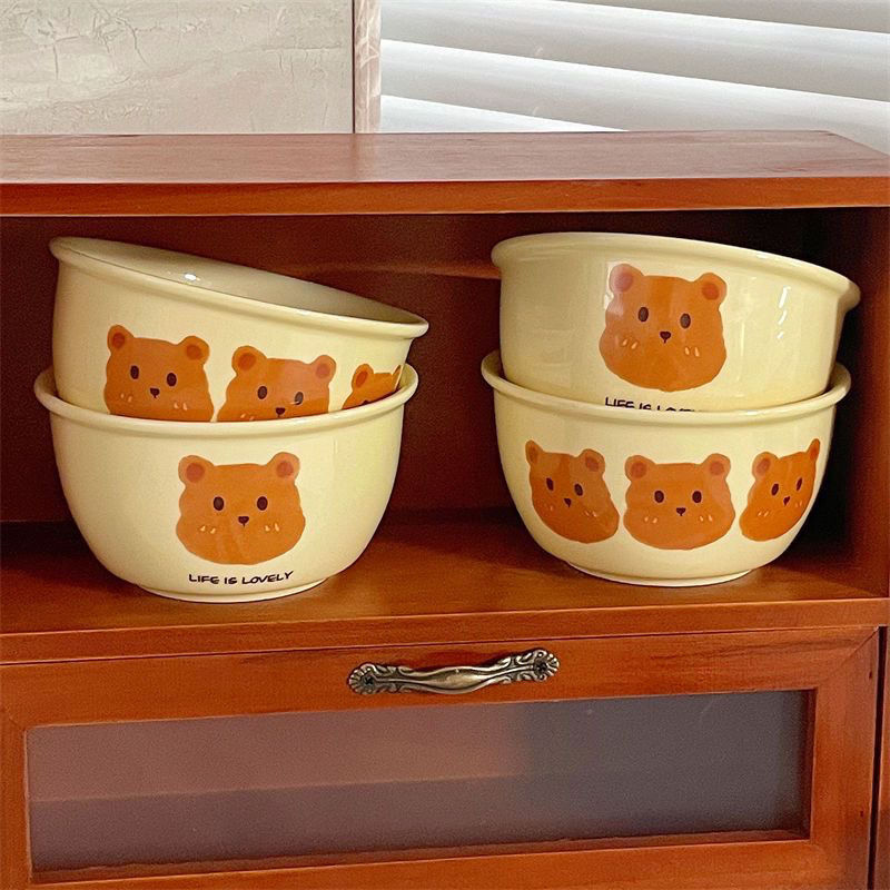 可爱小熊ins奶油陶瓷饭碗4.8英寸卡通家用加厚餐具耐高温