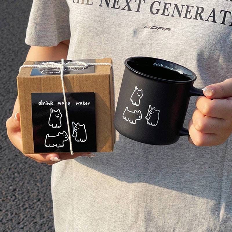 小众磨砂纯色小狗马克杯高颜值情侣款杯子一对陶瓷咖啡杯牛奶杯