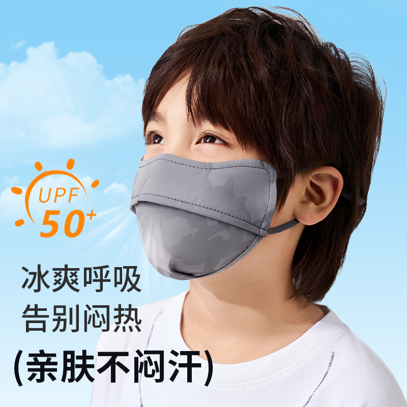 儿童冰丝防晒口罩专用男童防紫外线全脸女童遮阳面罩夏季轻薄透气