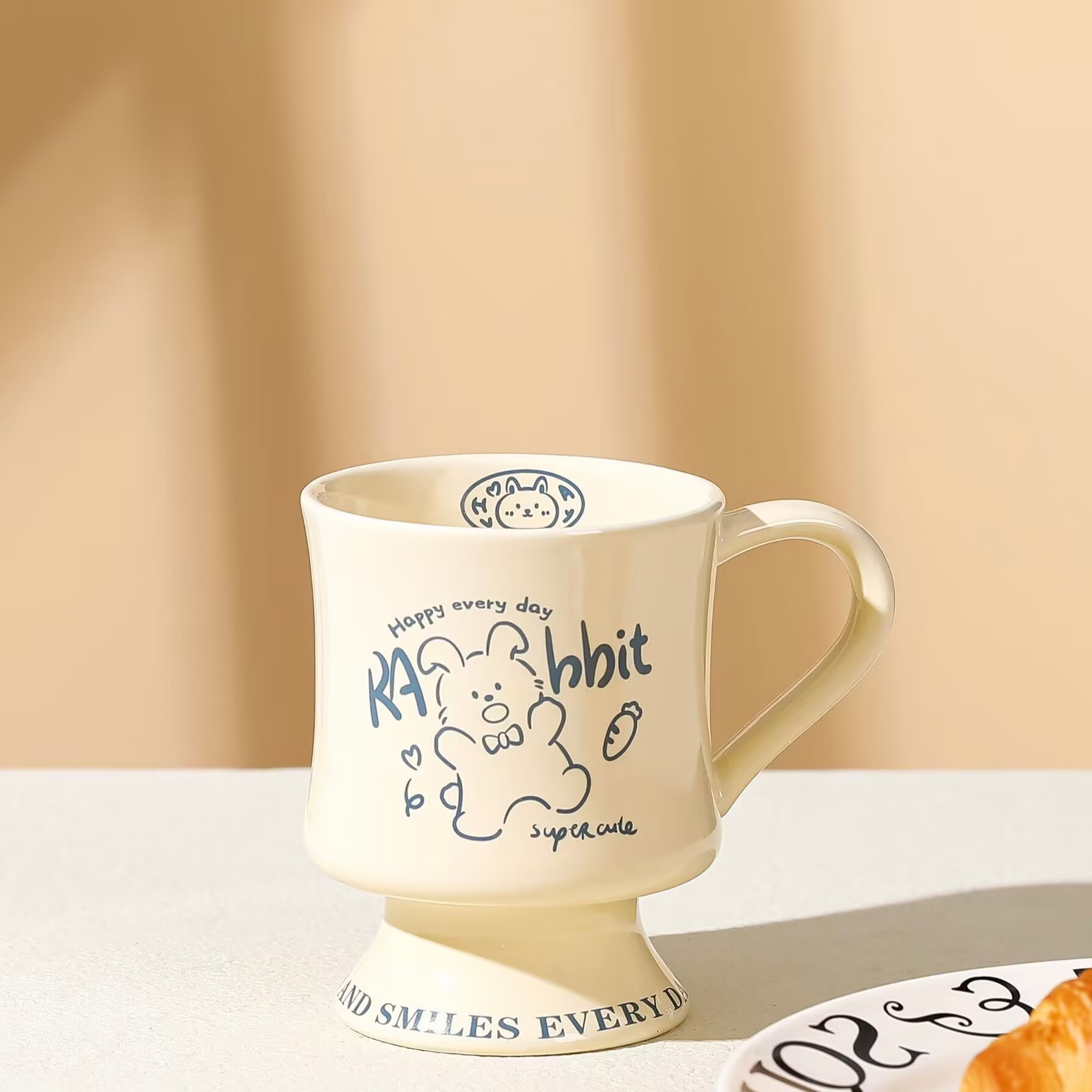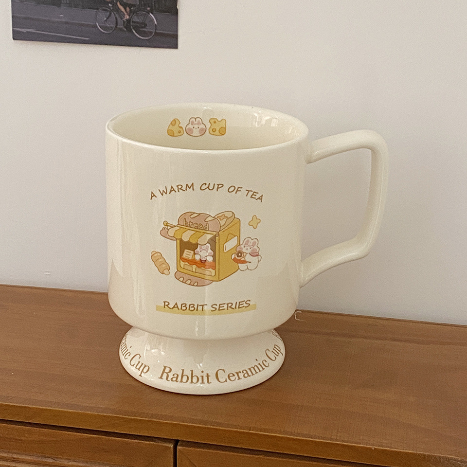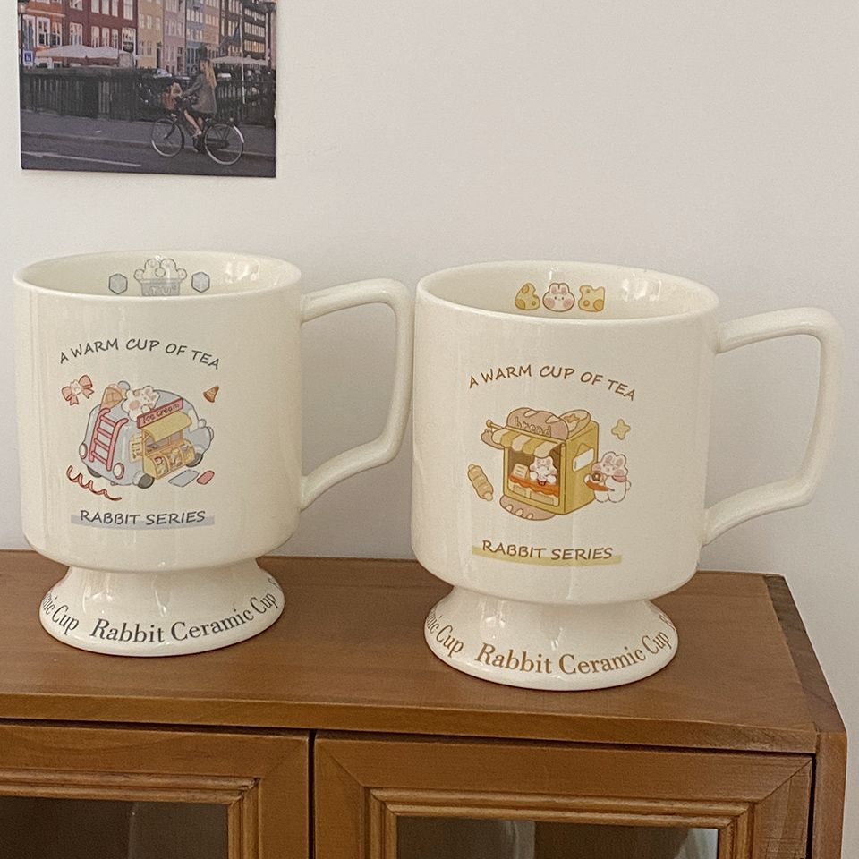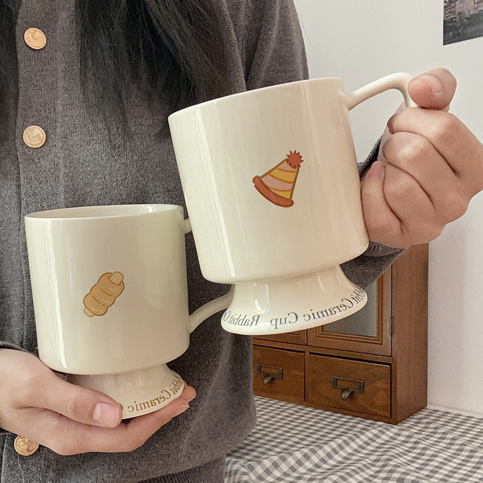 ins奶黄陶瓷马克杯设计法式高脚咖啡杯情侣水杯家用下午茶牛奶杯