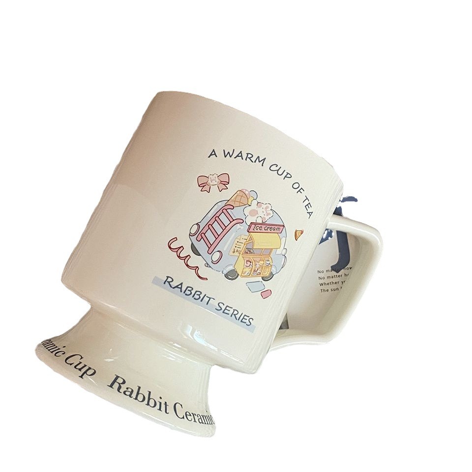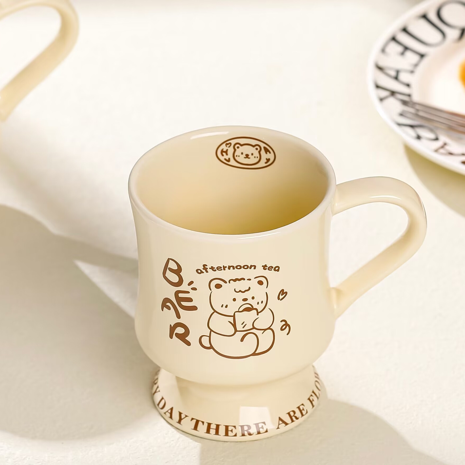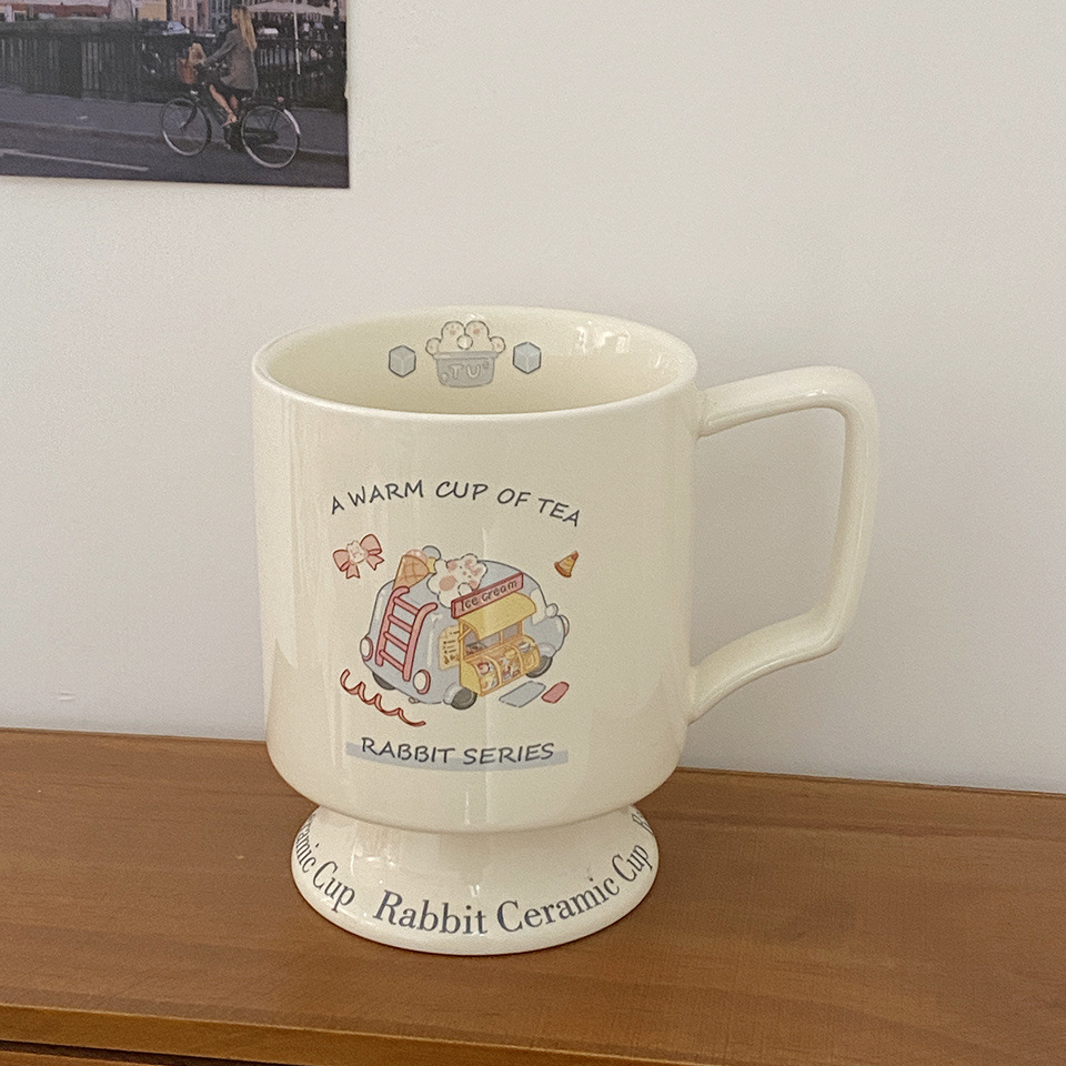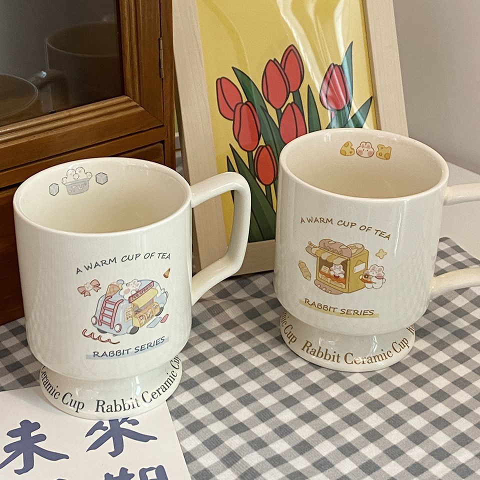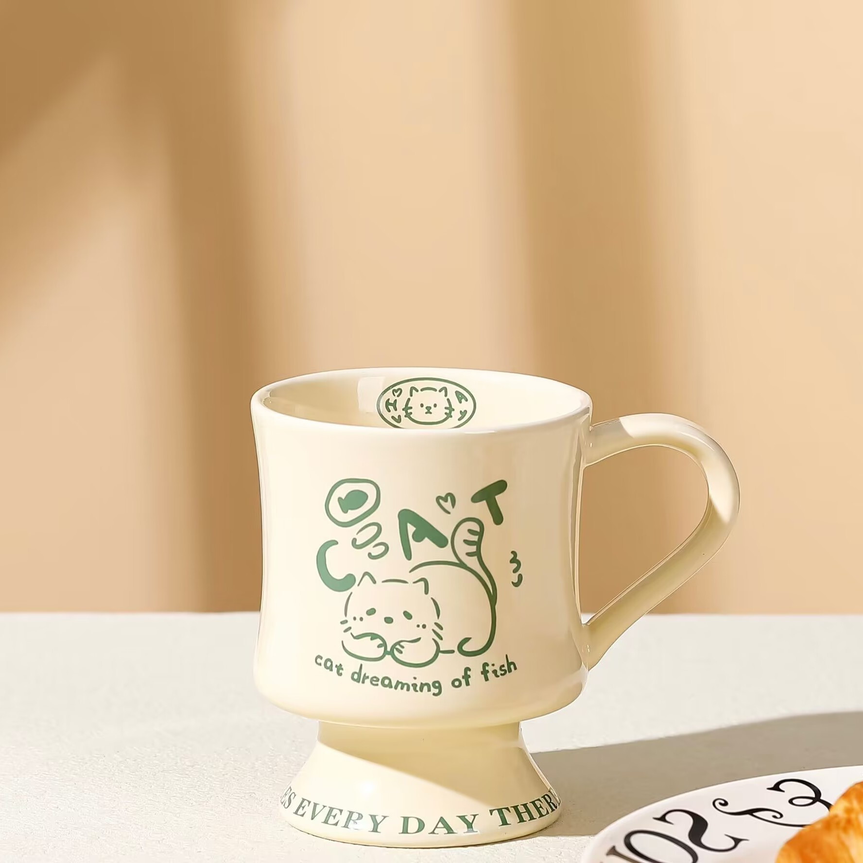 ins奶黄陶瓷马克杯设计法式高脚咖啡杯情侣水杯家用下午茶牛奶杯