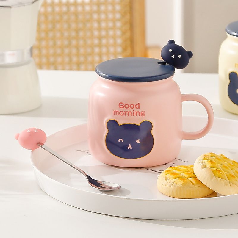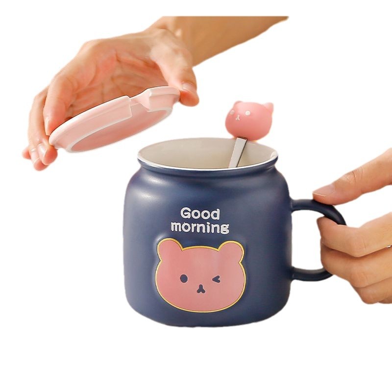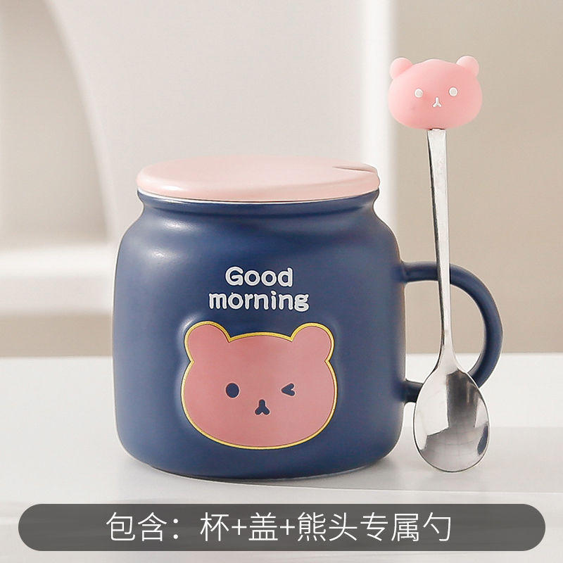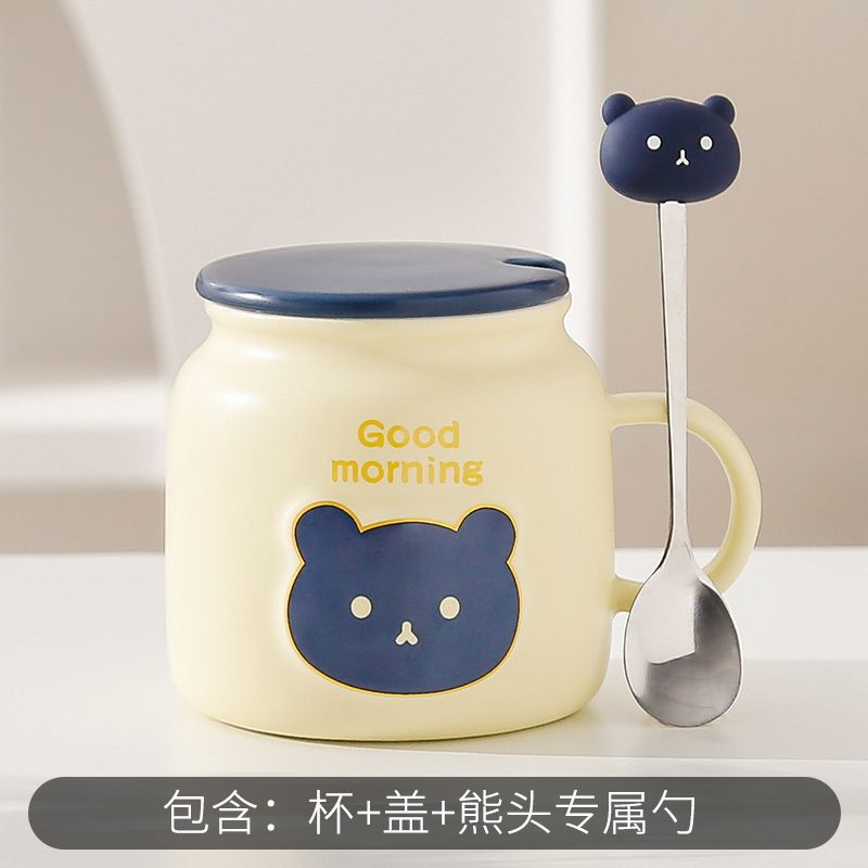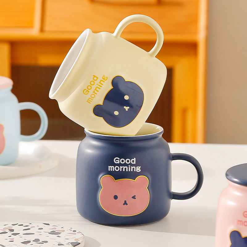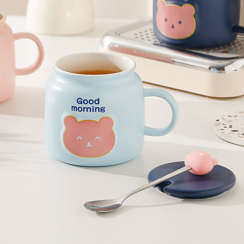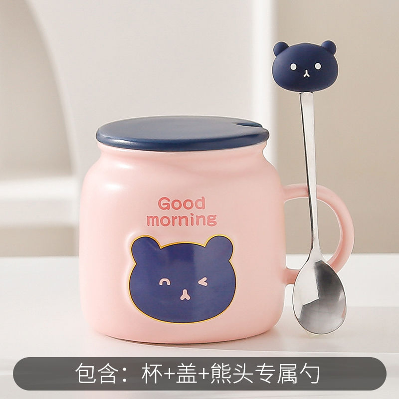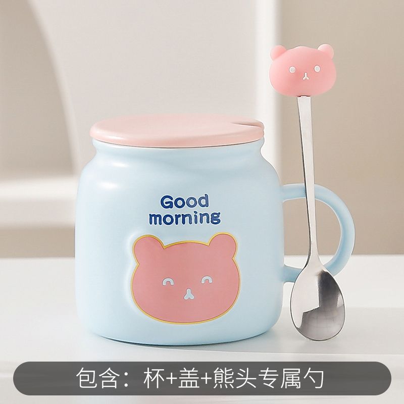 奶fufu小熊陶瓷马克杯浮雕杯子ins高颜值带盖勺大容量咖啡牛奶杯