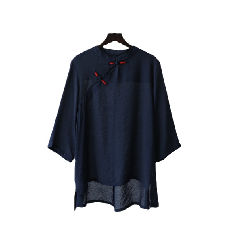 春夏新品棉麻女装复古立领盘扣手工缠线上衣女短袖衬衫