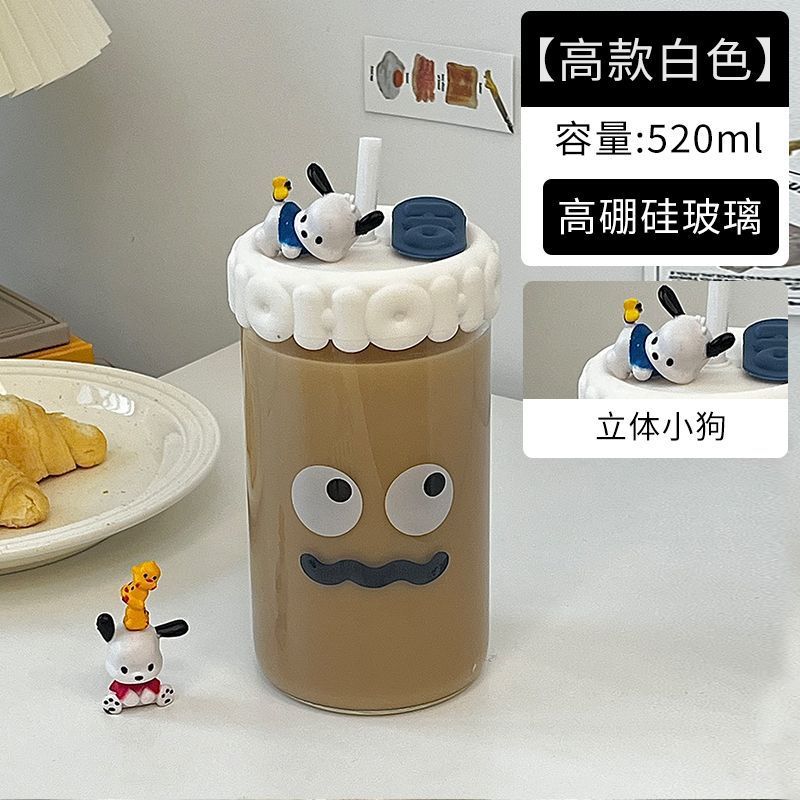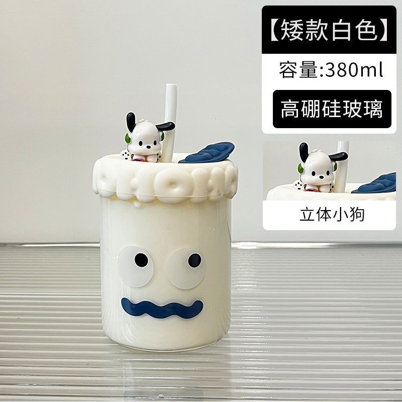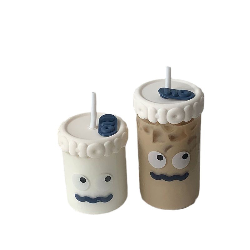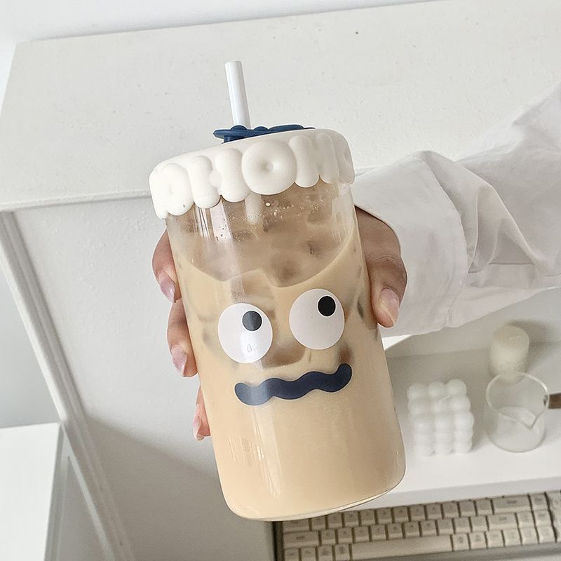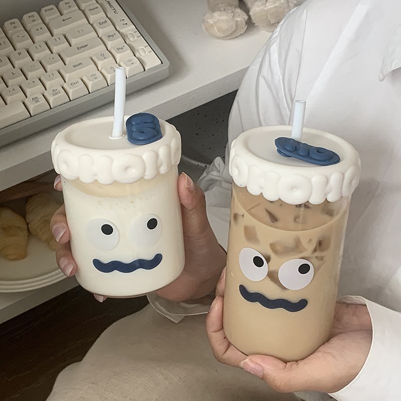表情水杯高中生杯子ins高颜值夏季咖啡杯大容量卡通吸管杯玻璃杯