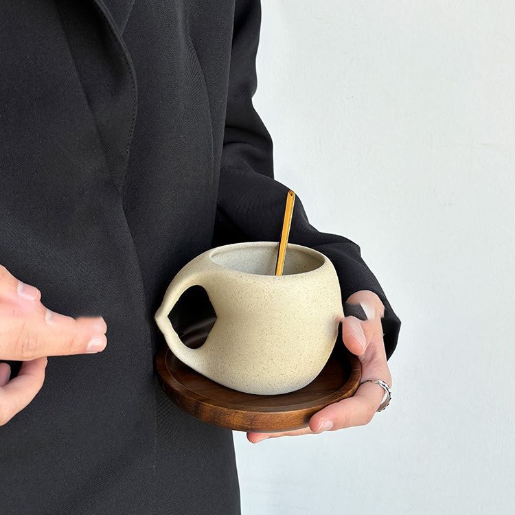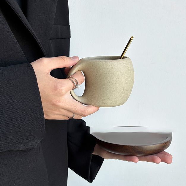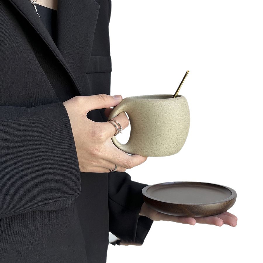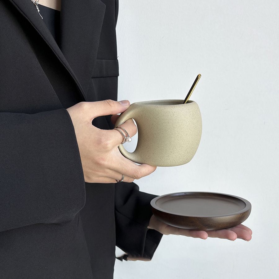 设计感咖啡杯250ML+随机木质杯垫+勺子