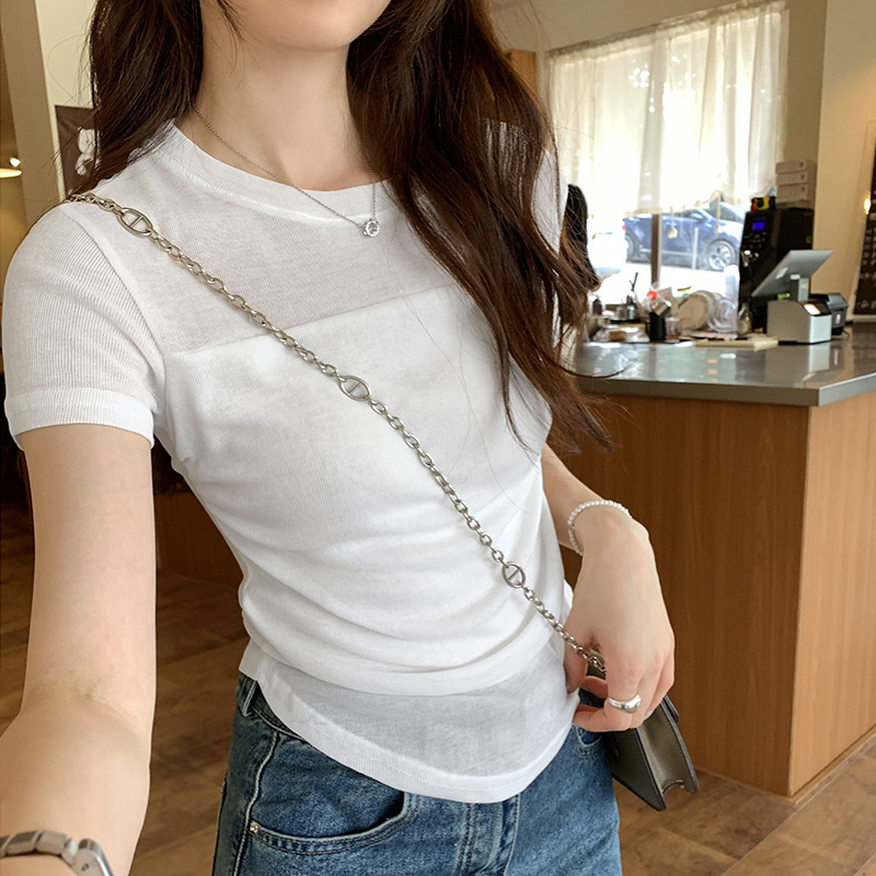 薄纱拼接设计感收腰抽褶显瘦正肩短袖T恤女夏季新款独特上衣