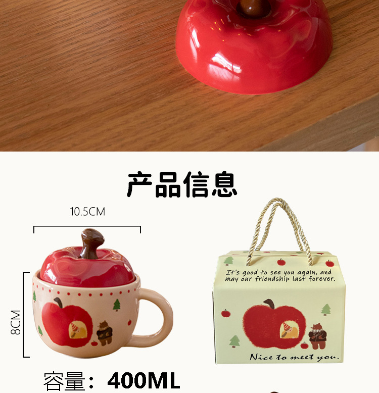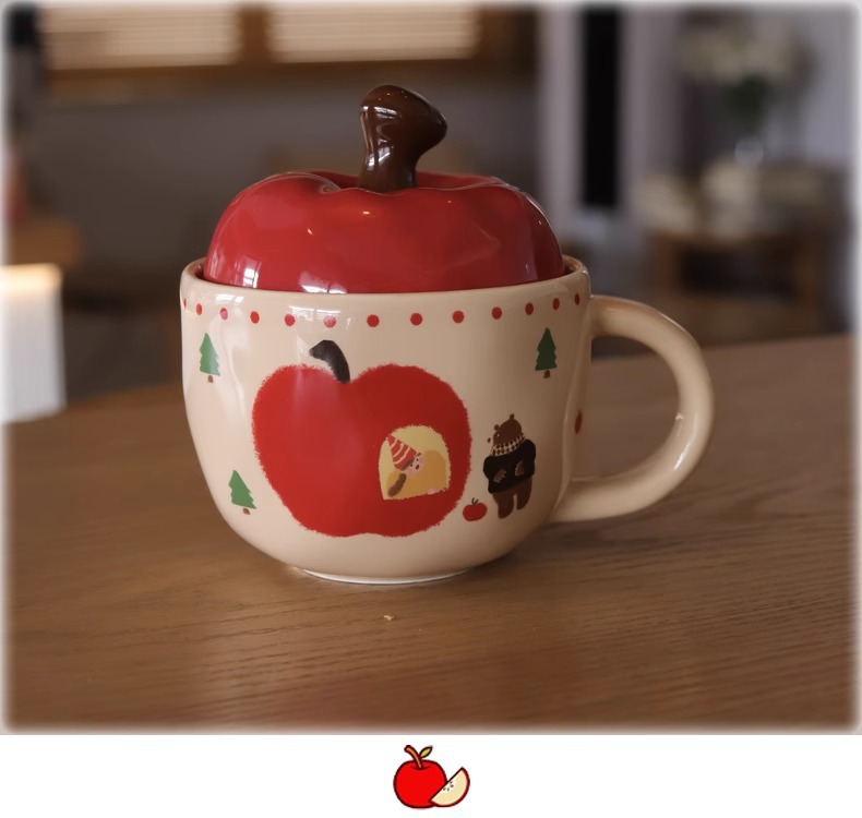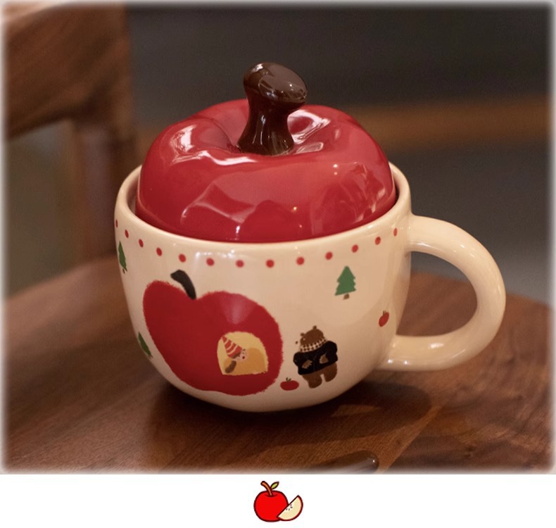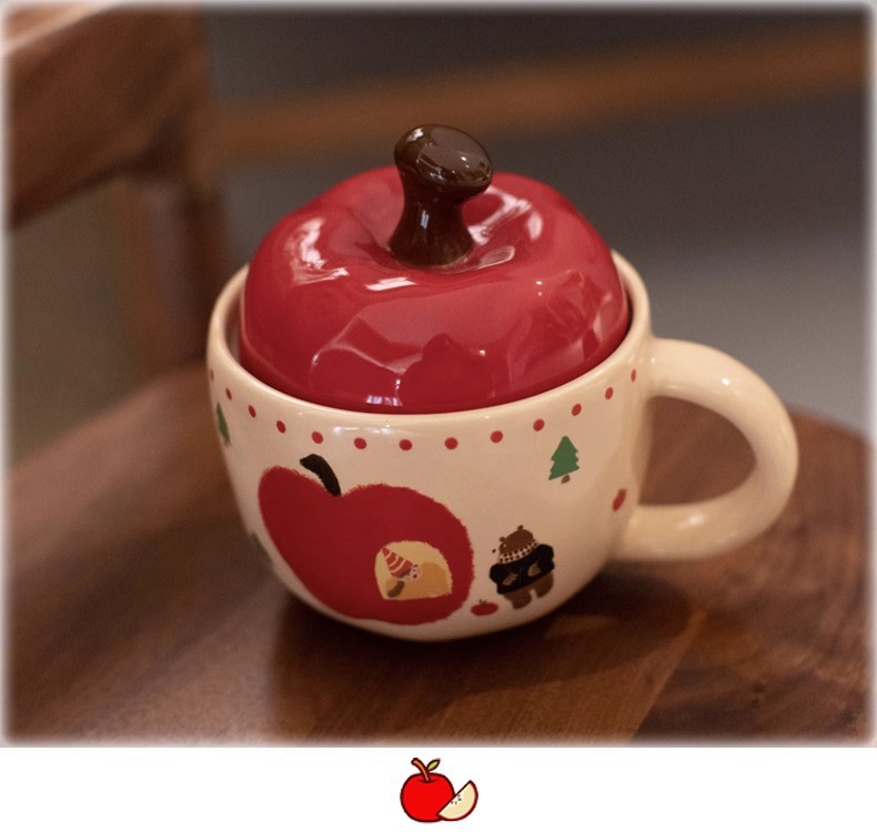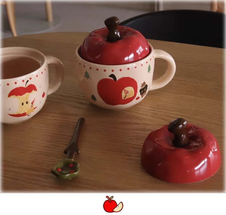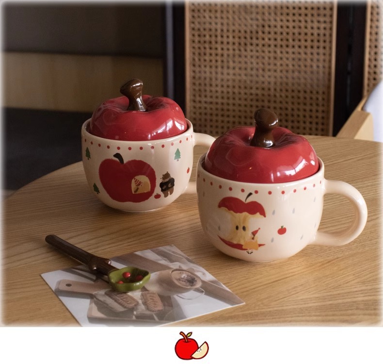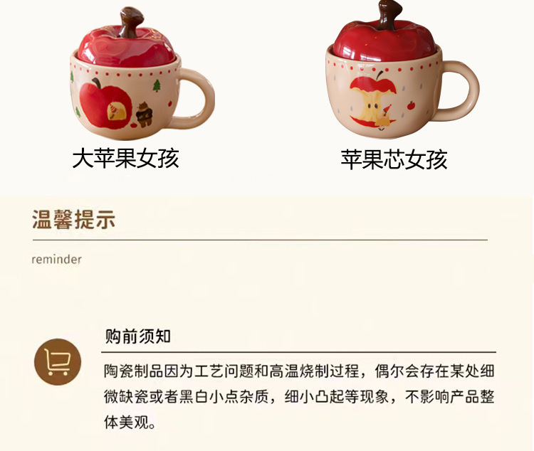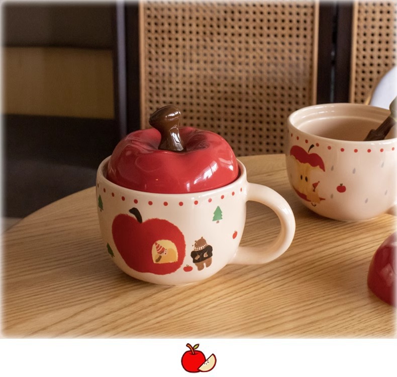 复古女孩苹果杯带盖带勺子马克杯送闺蜜生日礼物陶瓷杯家用喝水杯