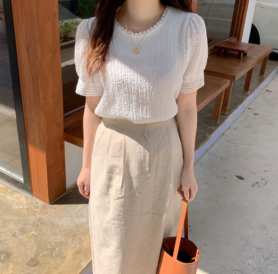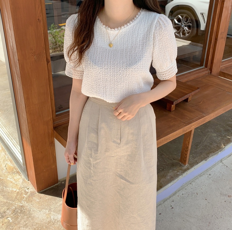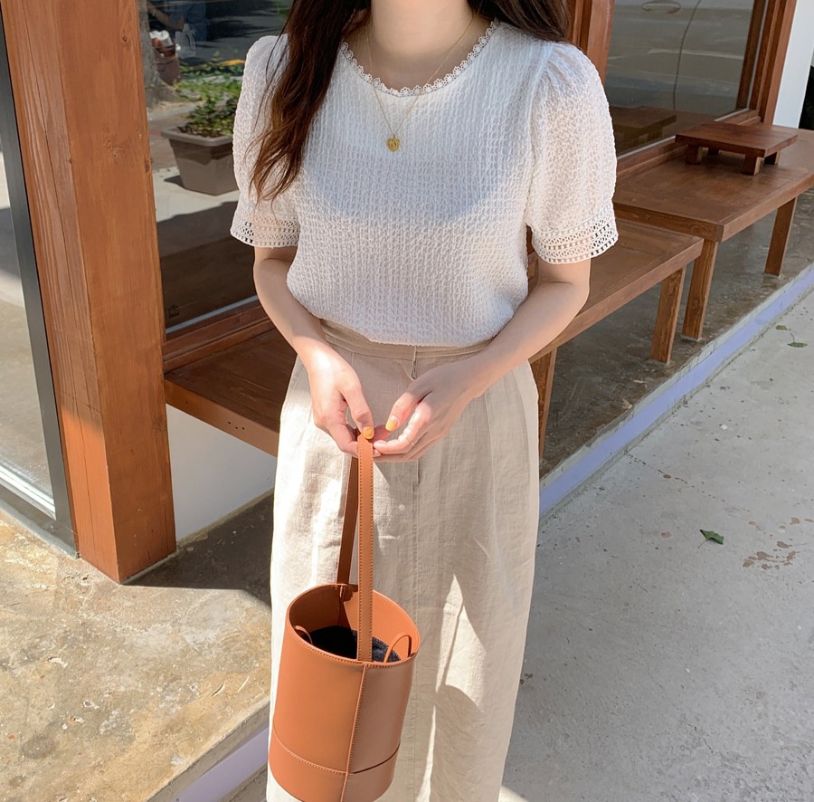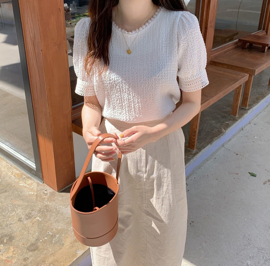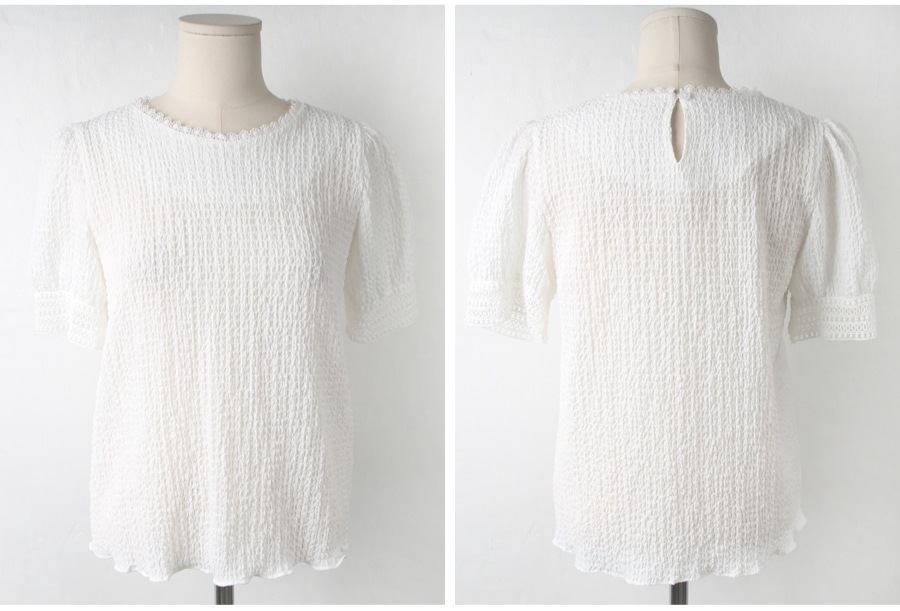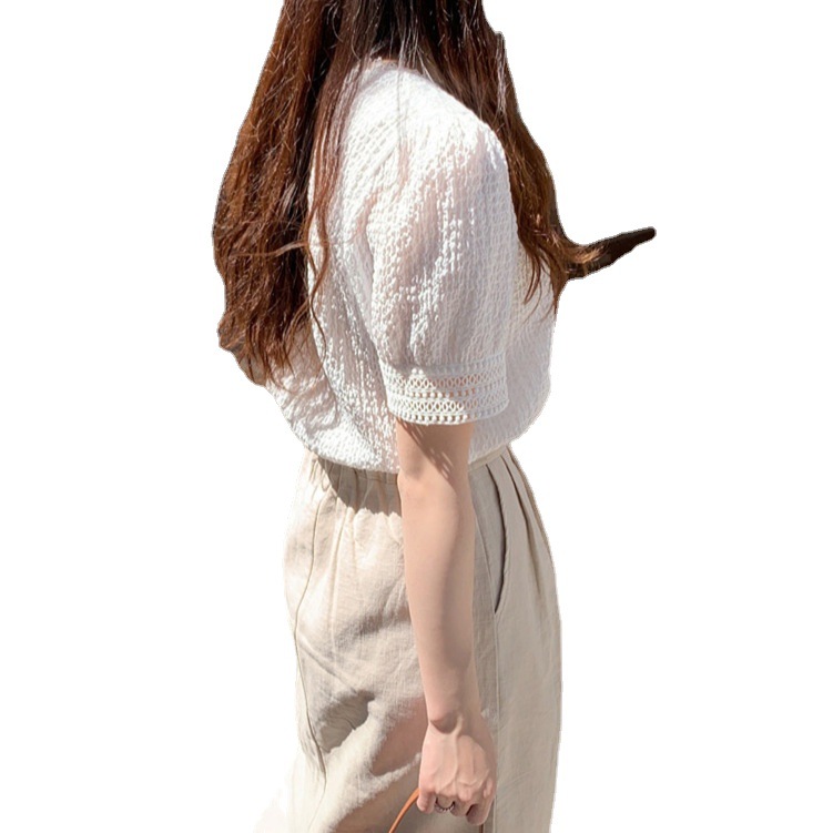韩国甜甜夏日气质镂空小花边褶皱简约娃娃衬衫夏季白衬衣