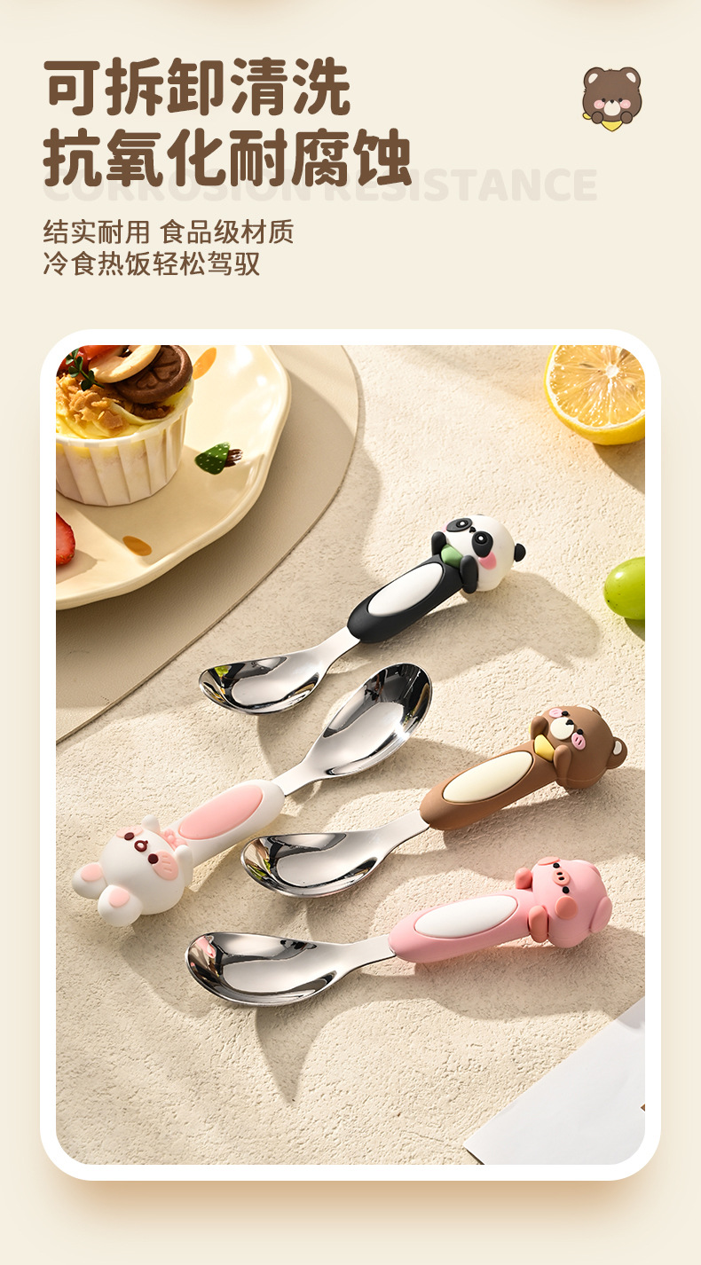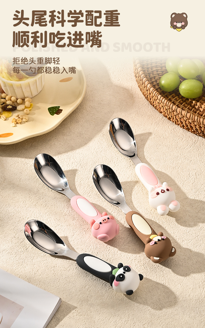 316不锈钢元宝勺可爱儿童勺子卡通宝宝专用吃饭小勺餐具