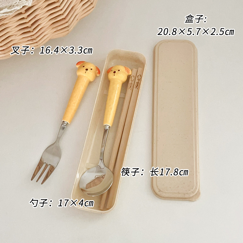 黄色小狗三件套【筷子+勺子+叉子】