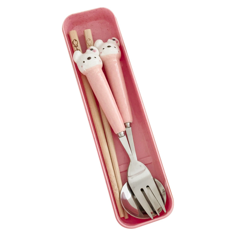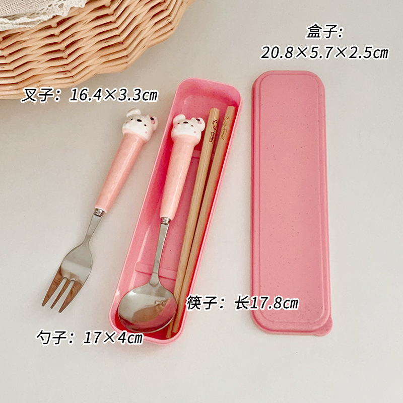 粉色小兔三件套【筷子+勺子+叉子】