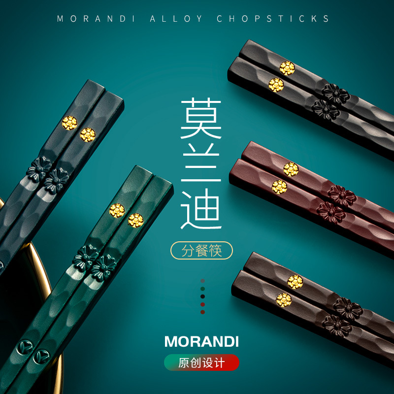 轻奢合金筷子家用高档一人一筷抗菌防霉防滑高颜值家庭快筷子