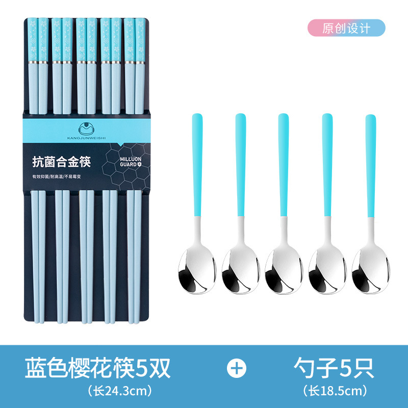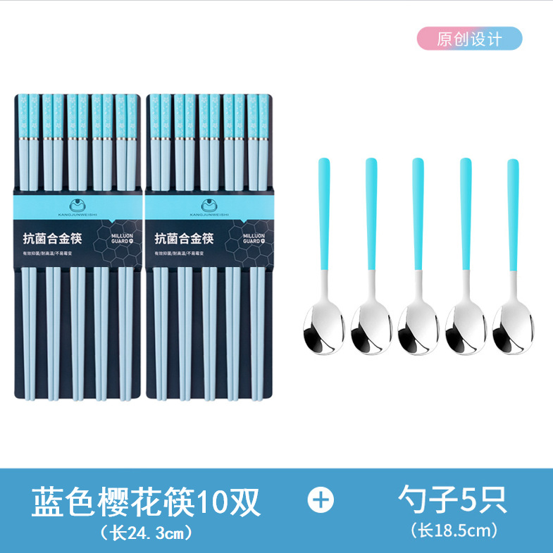 - 【莫兰迪】蓝色樱花5双+5蓝色勺