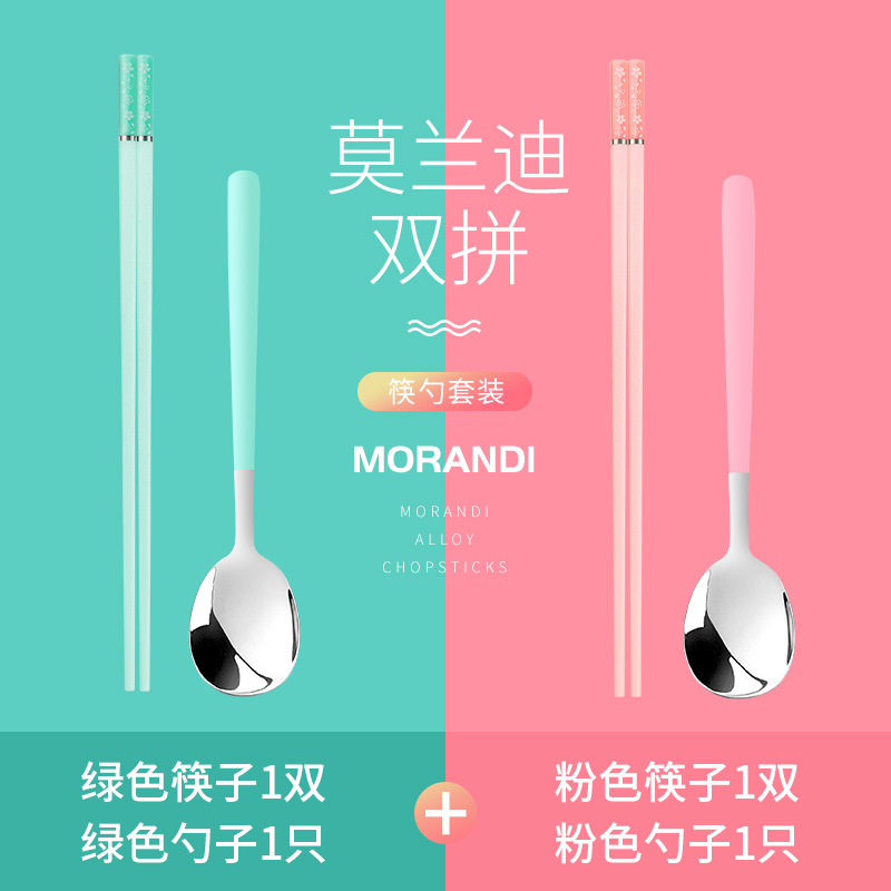 - 【莫兰迪】情侣樱花-绿粉各1双+绿粉勺各1支
