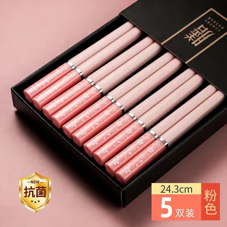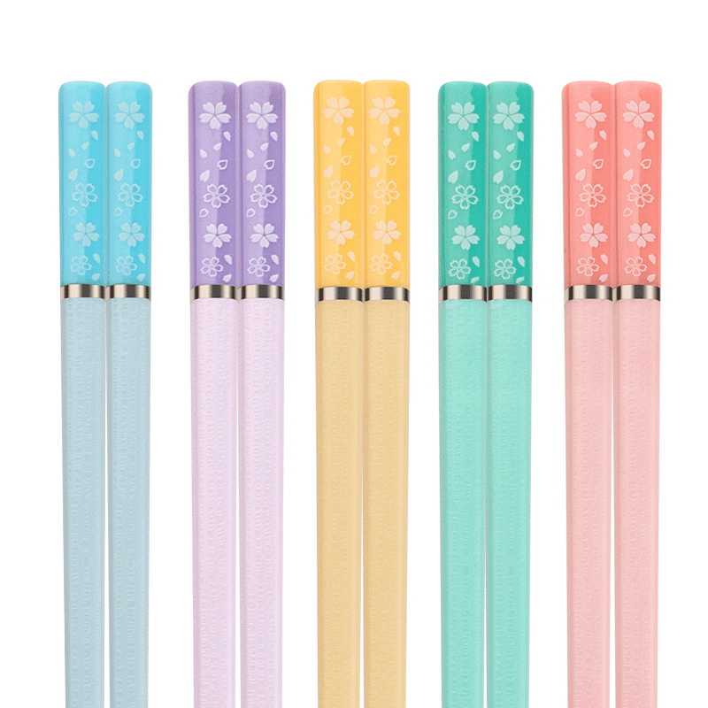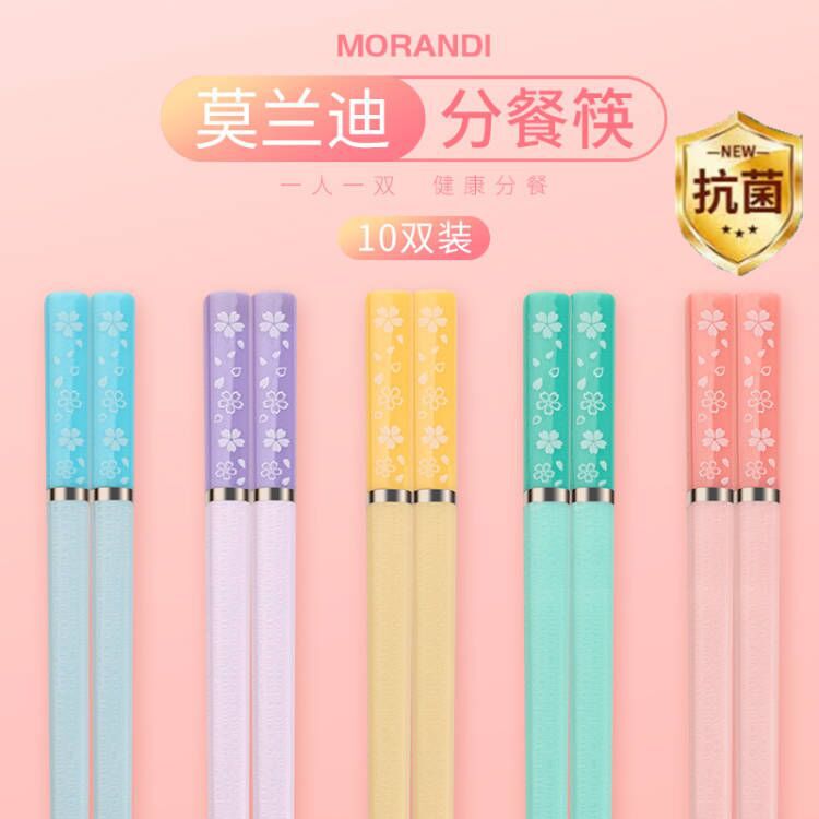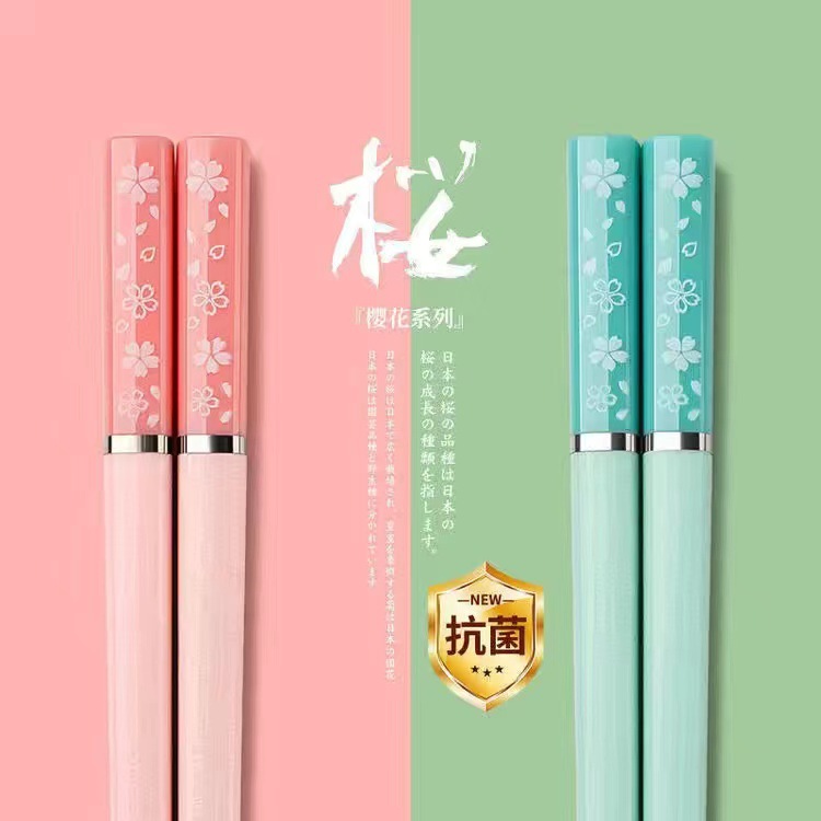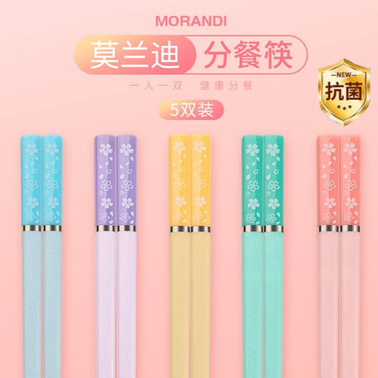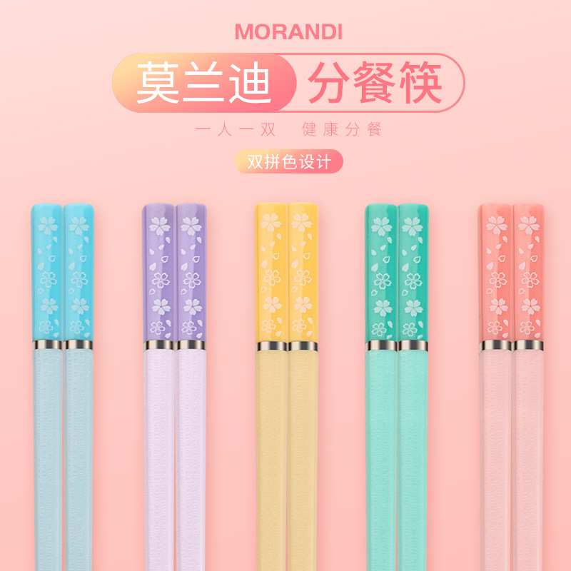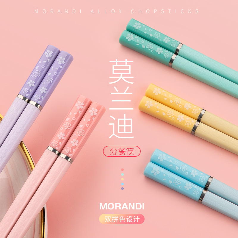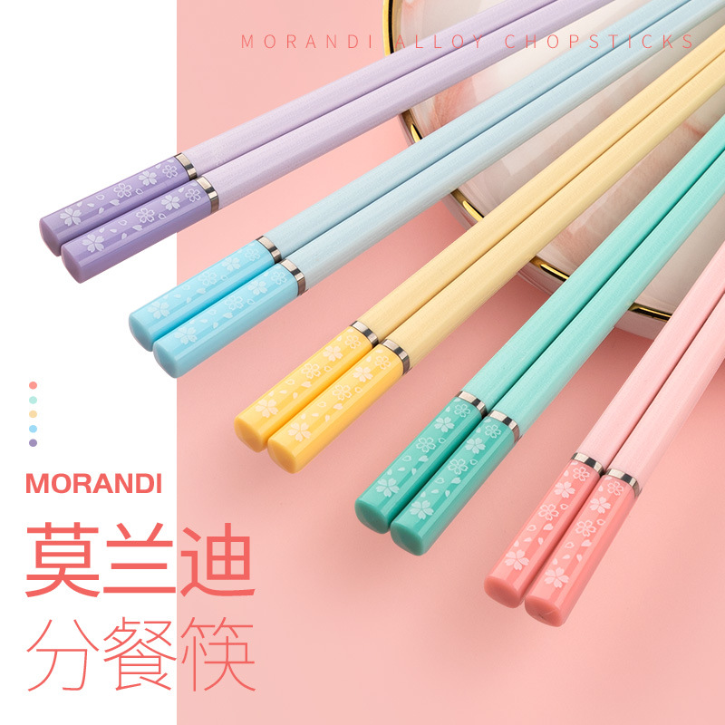 日式樱花合金筷子家用一人一筷抗菌防霉防滑高颜值莫兰迪彩色快子