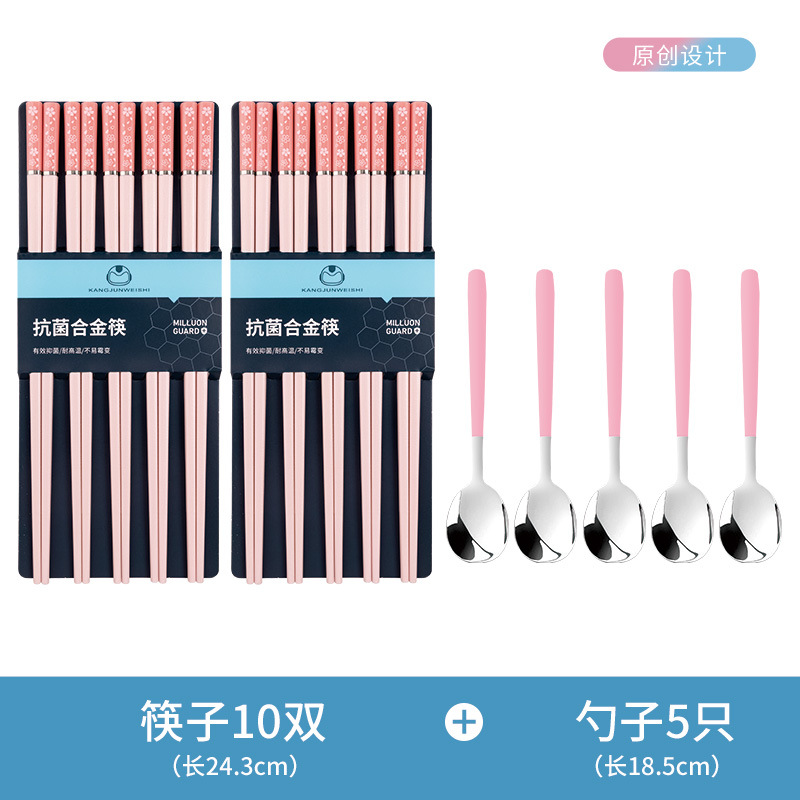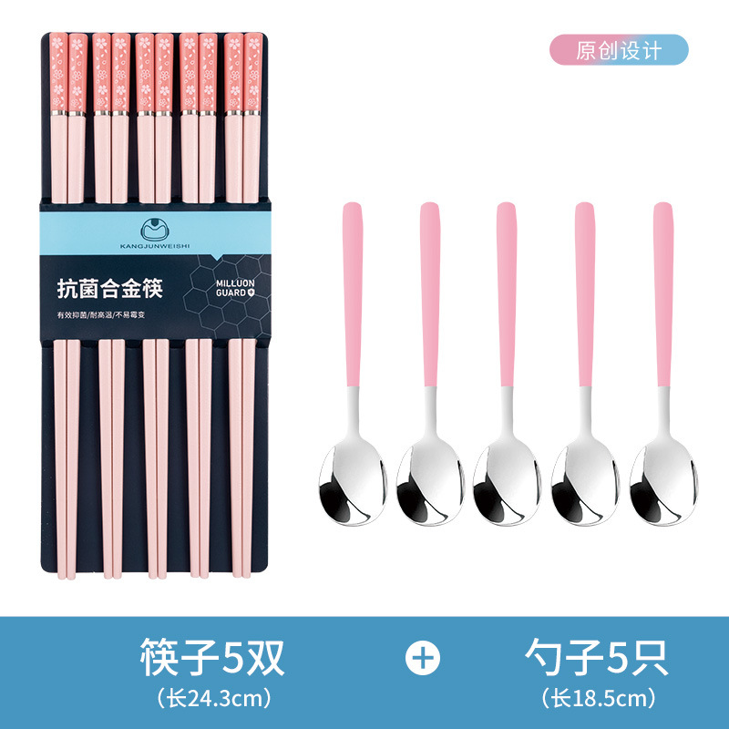 - 【莫兰迪】粉色樱花5双+5粉色勺