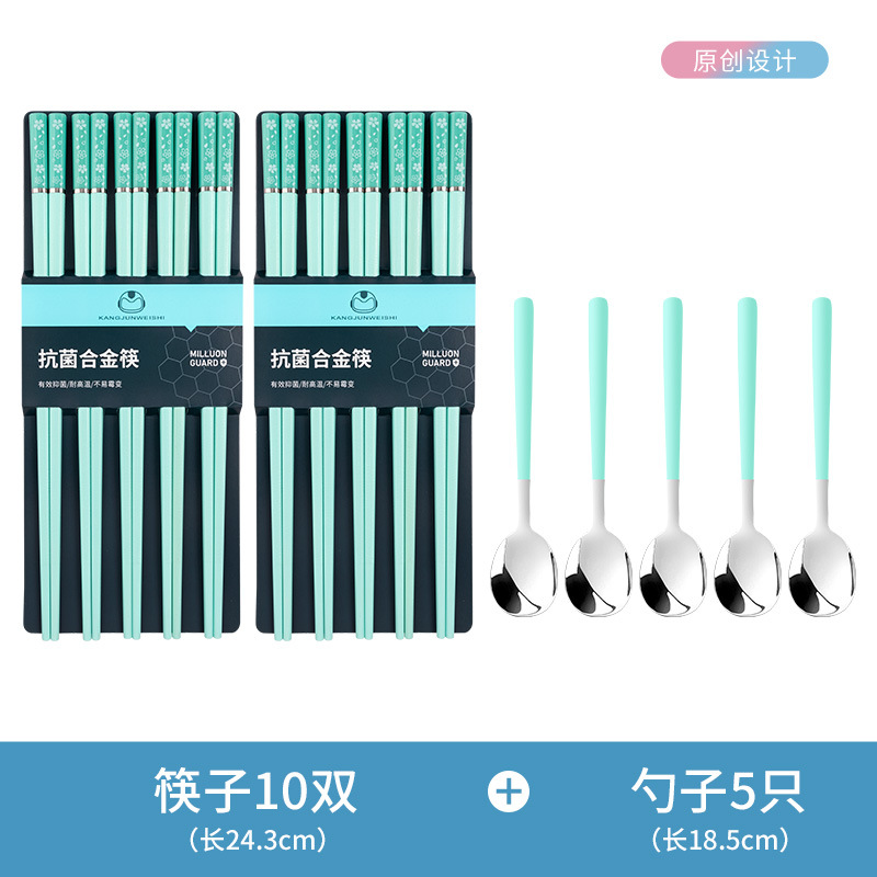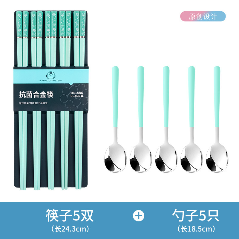 - 【莫兰迪】绿色樱花5双+5绿色勺