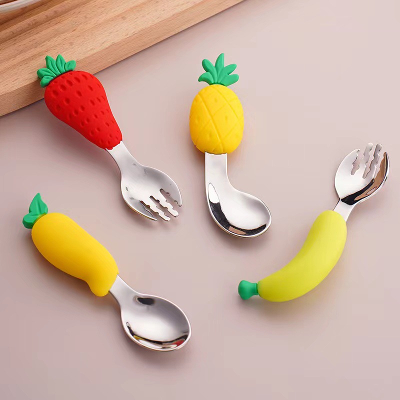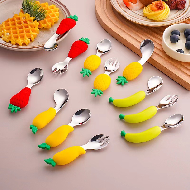 食品级304不锈钢婴幼儿童可爱餐具 幼儿园宝宝孩子辅食不伤嘴勺叉