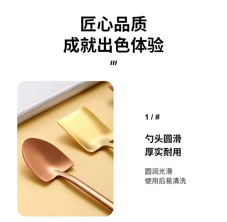 跨境网红长柄304不锈钢钛金咖啡搅拌冰勺 西瓜铁锹甜品冰淇淋尖勺