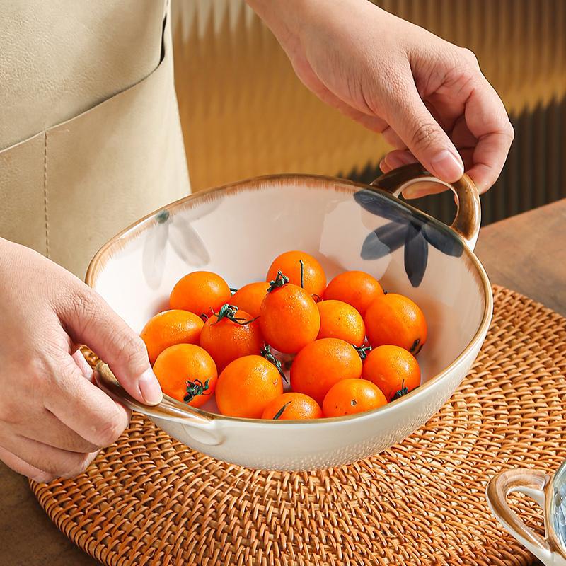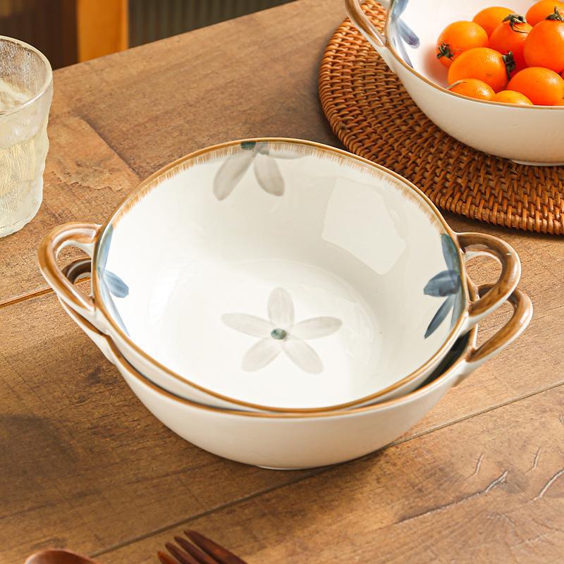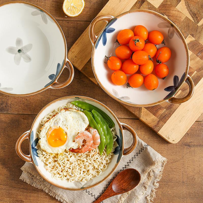 墨蓝双耳汤碗大号拉面碗高级感家用陶瓷汤盆面条碗螺蛳粉碗