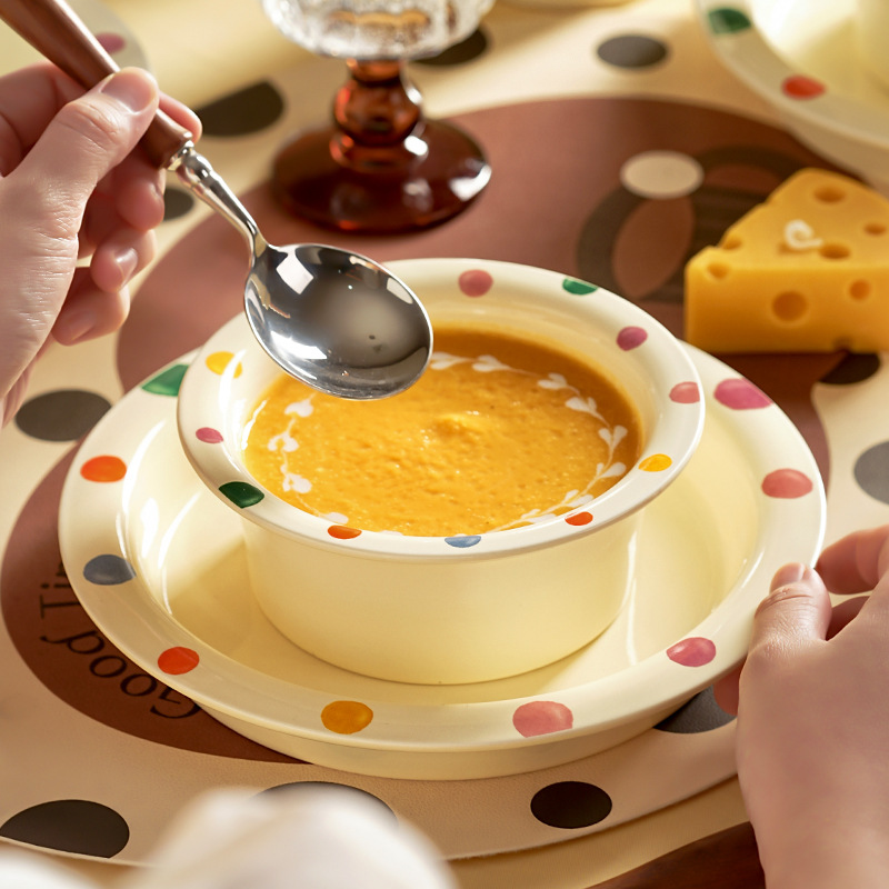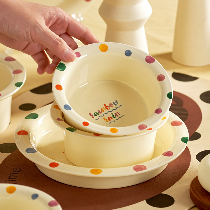 家用碗碟套装2025新款波点可爱陶瓷碗盘乔迁结婚礼物碗筷餐具