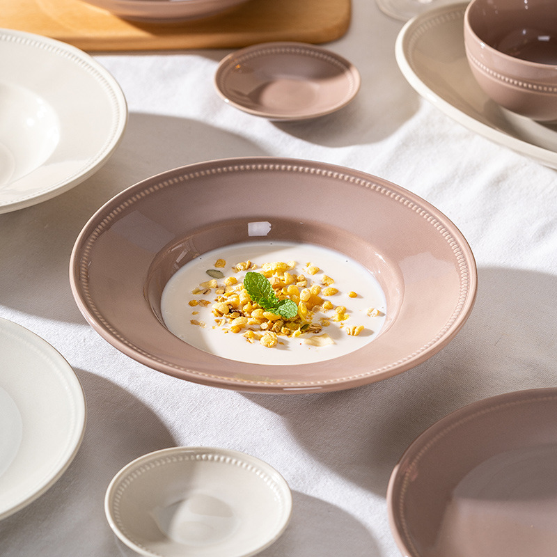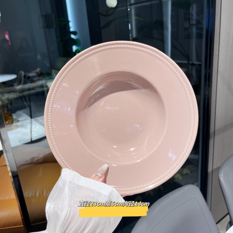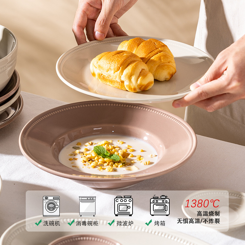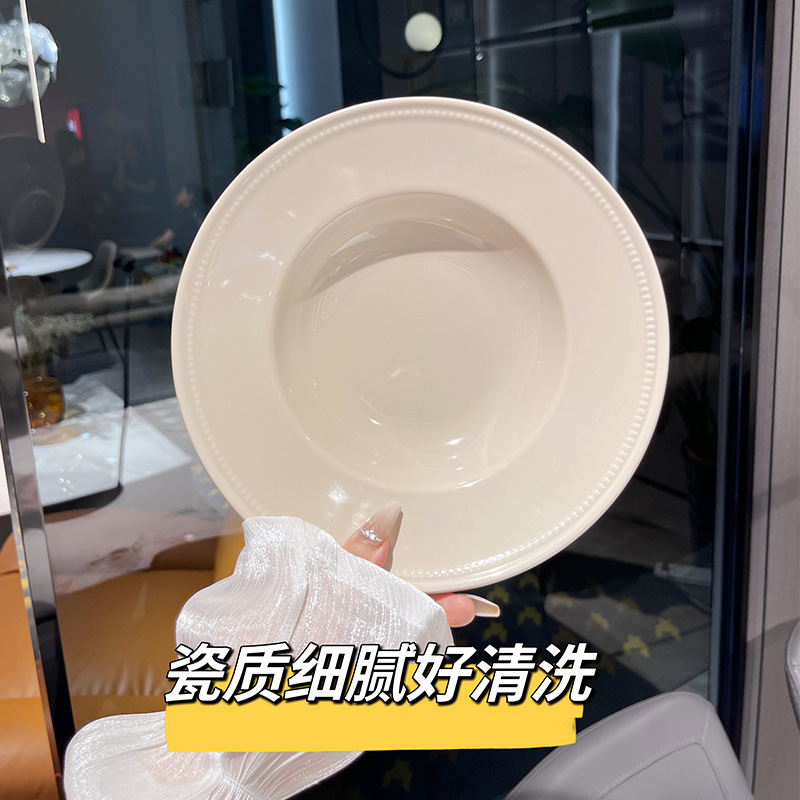 奶油风珍珠草帽盘纯色釉下彩高级感家用陶瓷菜碟轻奢碟子餐盘餐具
