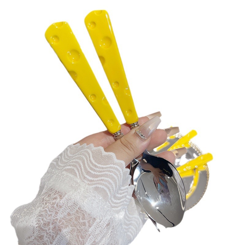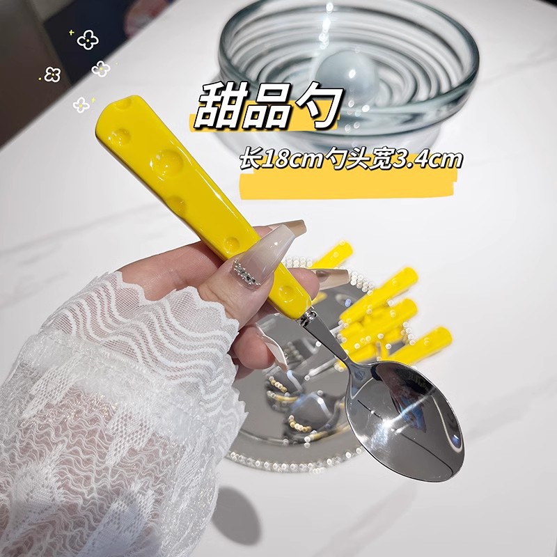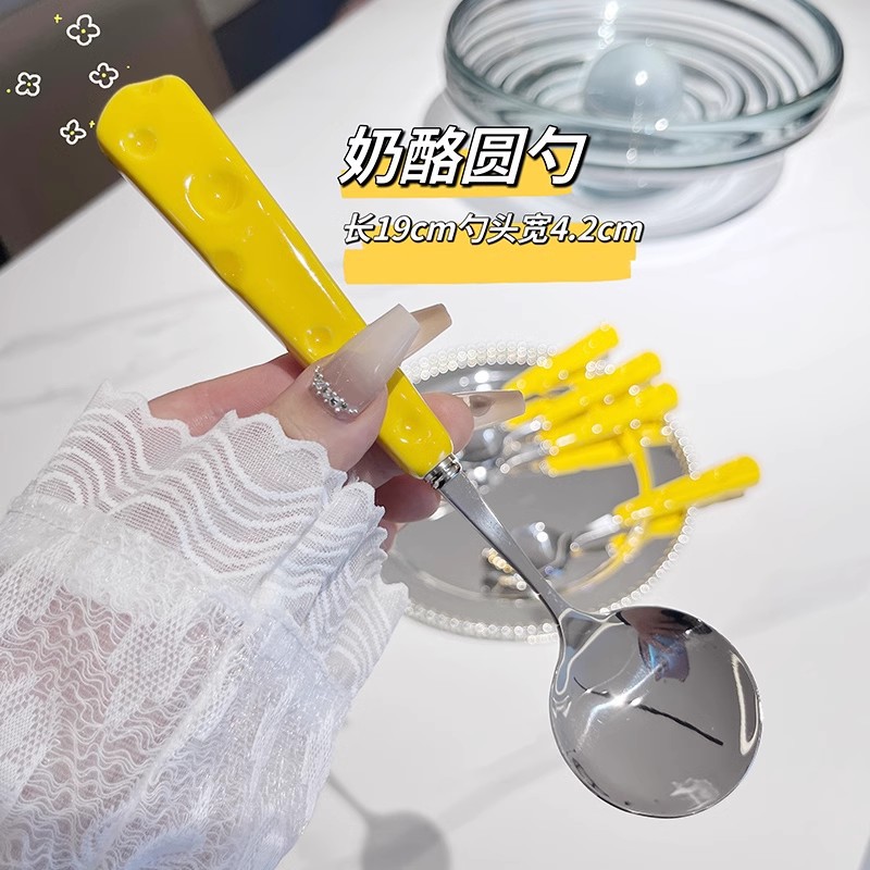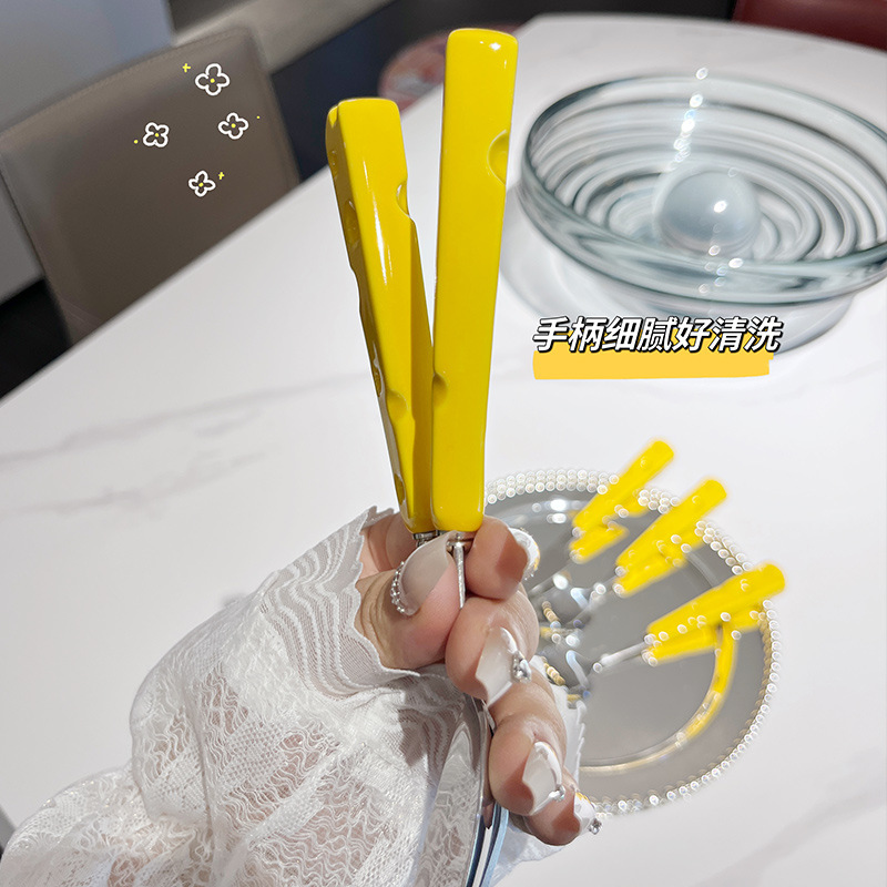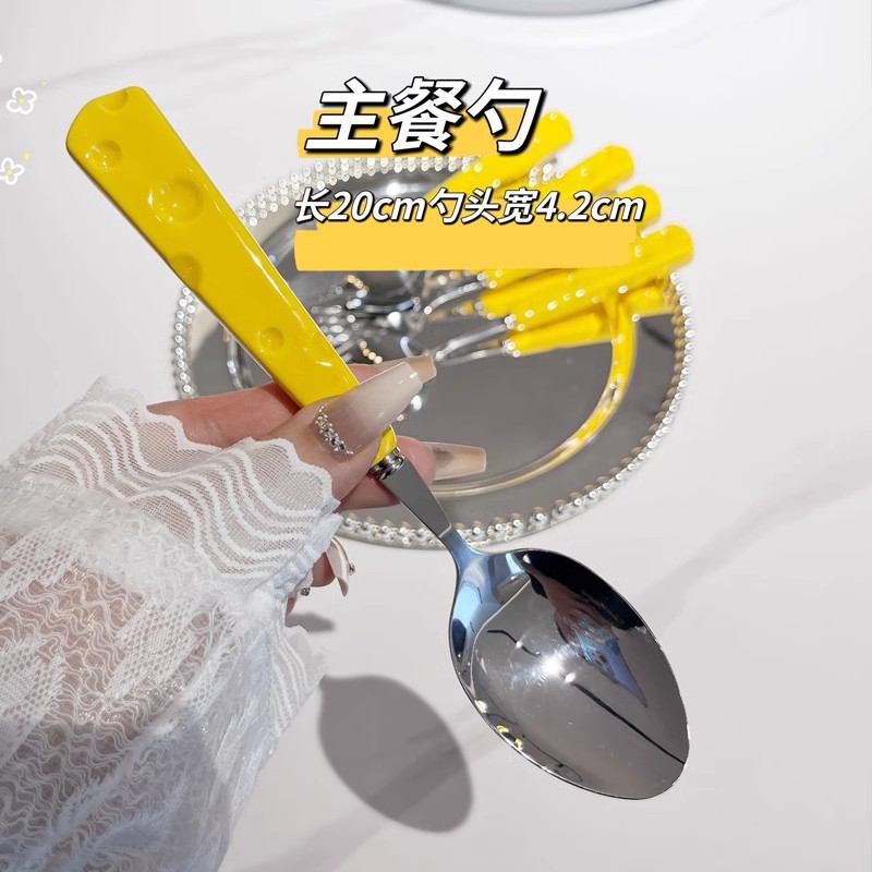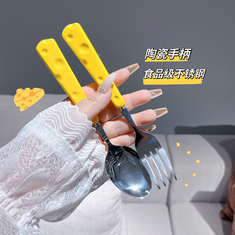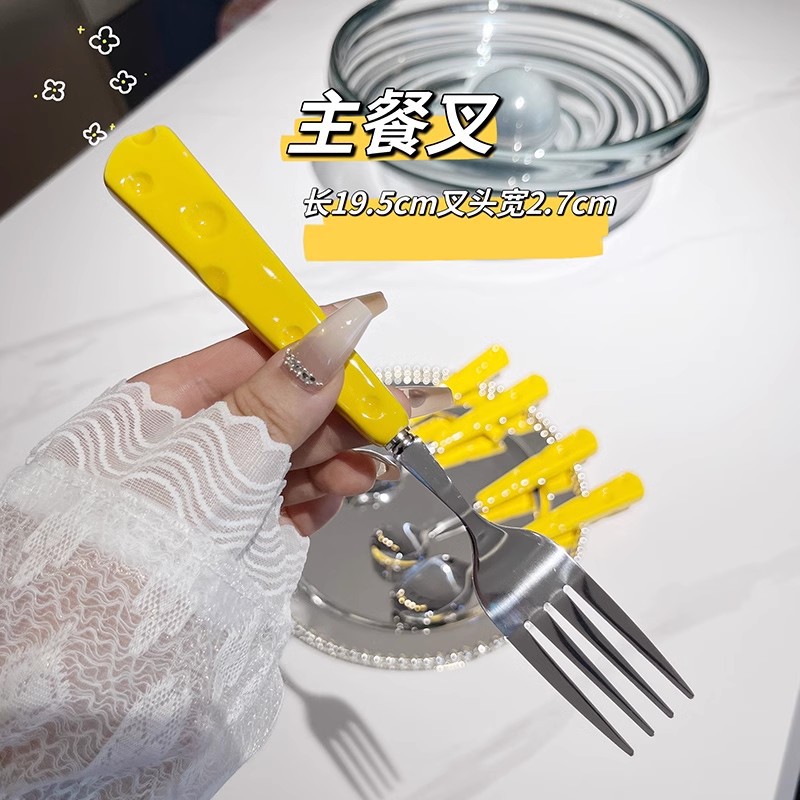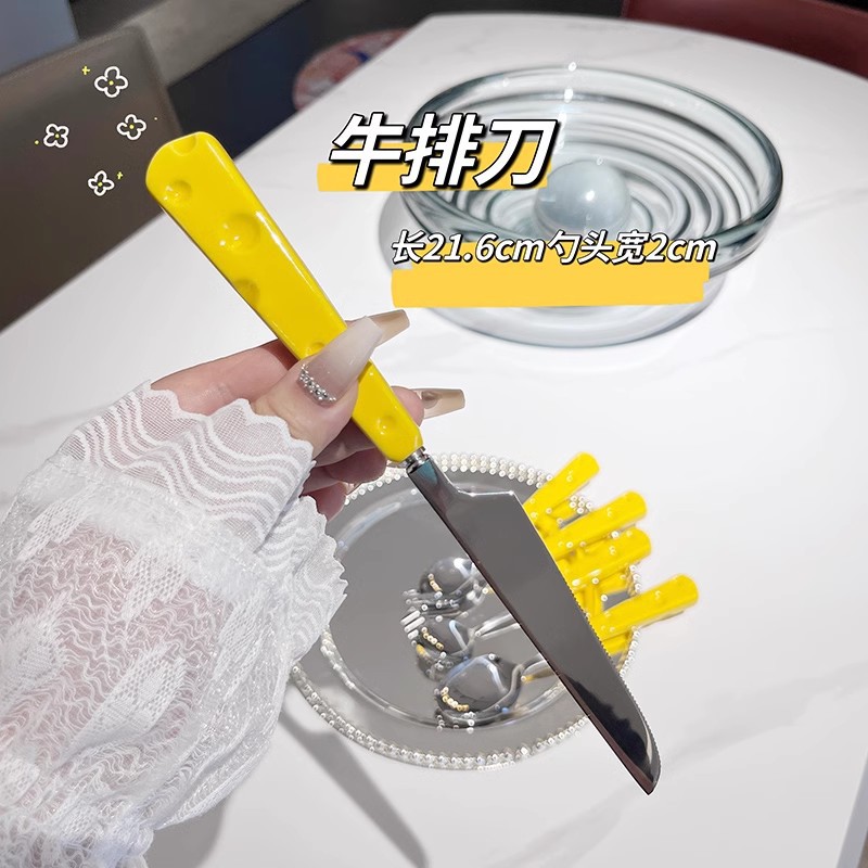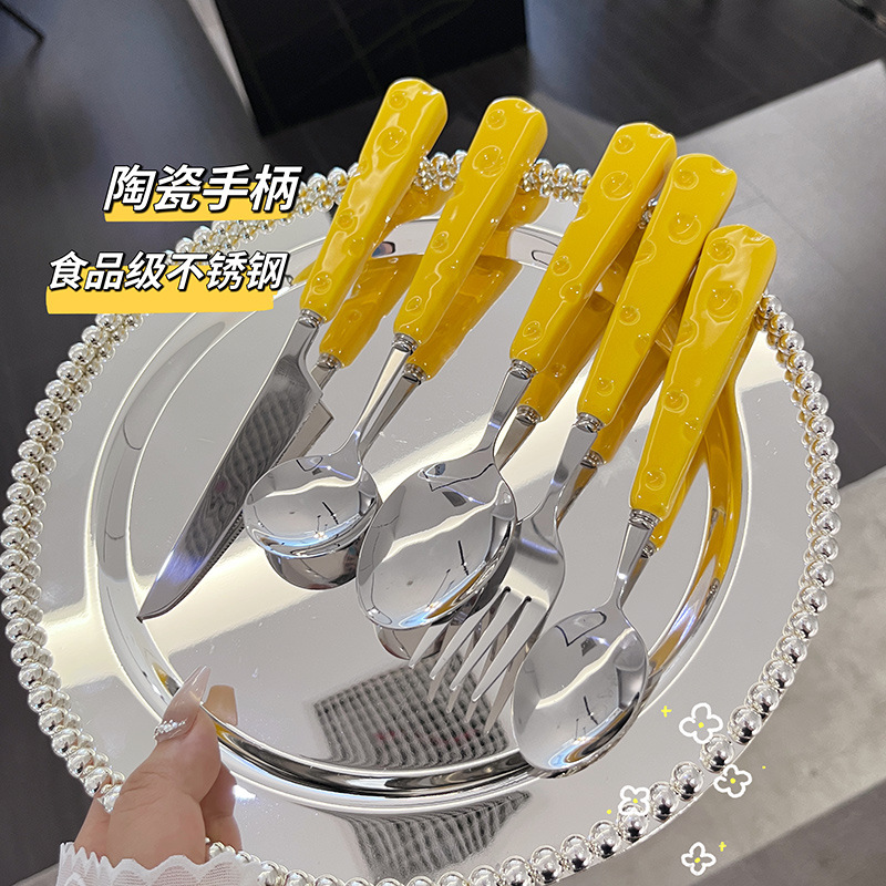 黄色奶酪不锈钢勺叉陶瓷手柄可爱家用西餐具主餐勺牛排刀叉甜品勺